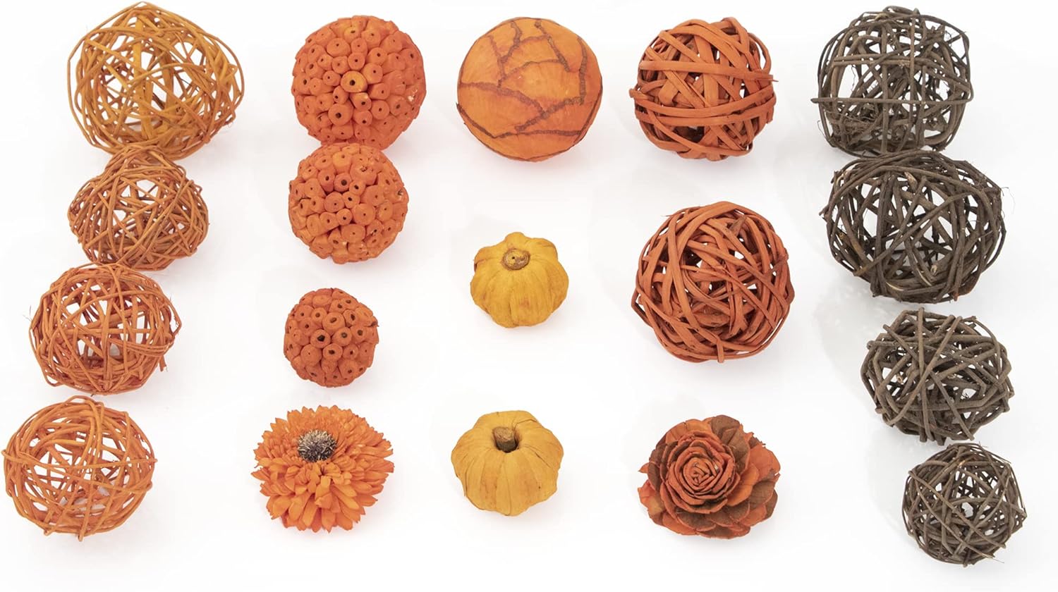 • Includes Mini Pumpkins, Flower and Unique Decorative Orbs