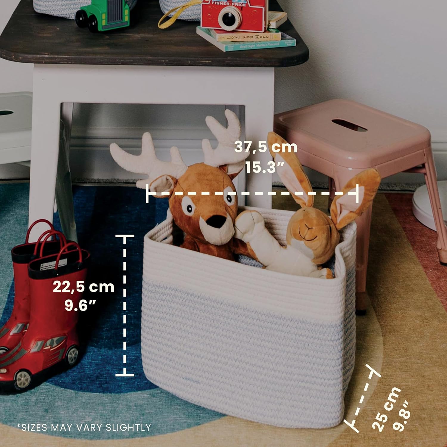 • All-Purpose Rope Storage Baskets – These 15” x 10” x 9” rope storage baskets are ideal for keeping your everyday home life more organized and provide plenty of compact storage space for arts and crafts, classroom decor, kid’s toys, or nursery room accessories