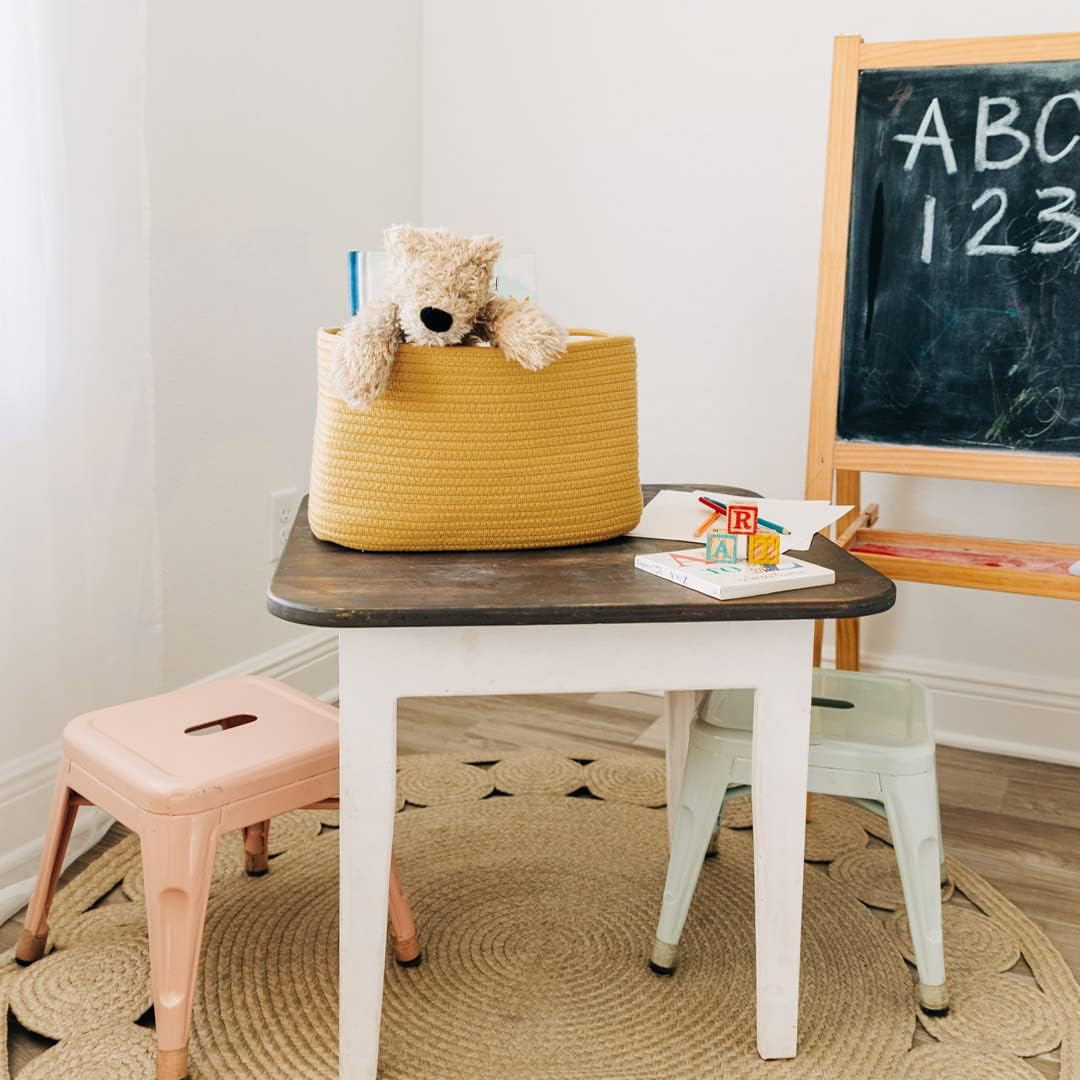 • All-Purpose Rainbow Storage Baskets – This 15” x 10” x 9” rainbow rope baskets for organizing is ideal for keeping your everyday home life more organized and provide plenty of compact storage space for arts and crafts, rainbow classroom decor, kid’s toys, or nursery room accessories