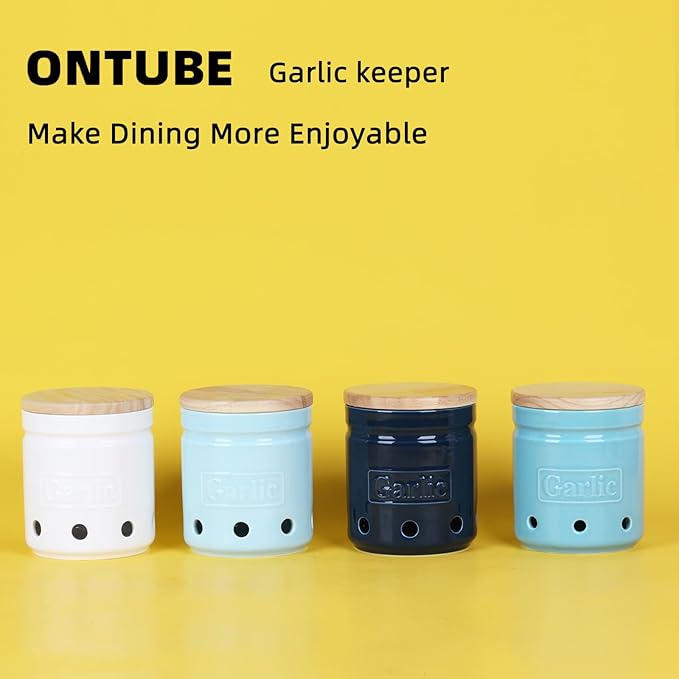 • HUMANIZED DESIGN : ONTUBE Garlic Keeper's size is 4.5"Lx4.5"Wx5.4"H which can easily hold 3 to 4 heads of normal size garlic. Because it is deep enough, it can even hold 2 potatoes