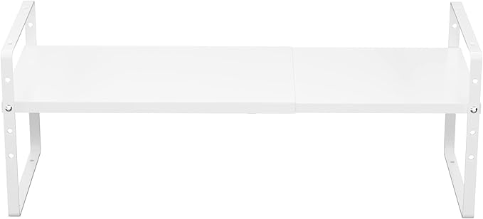 iPEGTOP Expandable Cabinet Storage Shelf Organizer Rack, Heavy Duty Cupboard Stand Spice Rack Adjustable Height Garage Pantry Shelf Space Riser for Counter Kitchen Organization, White, 1 Pack