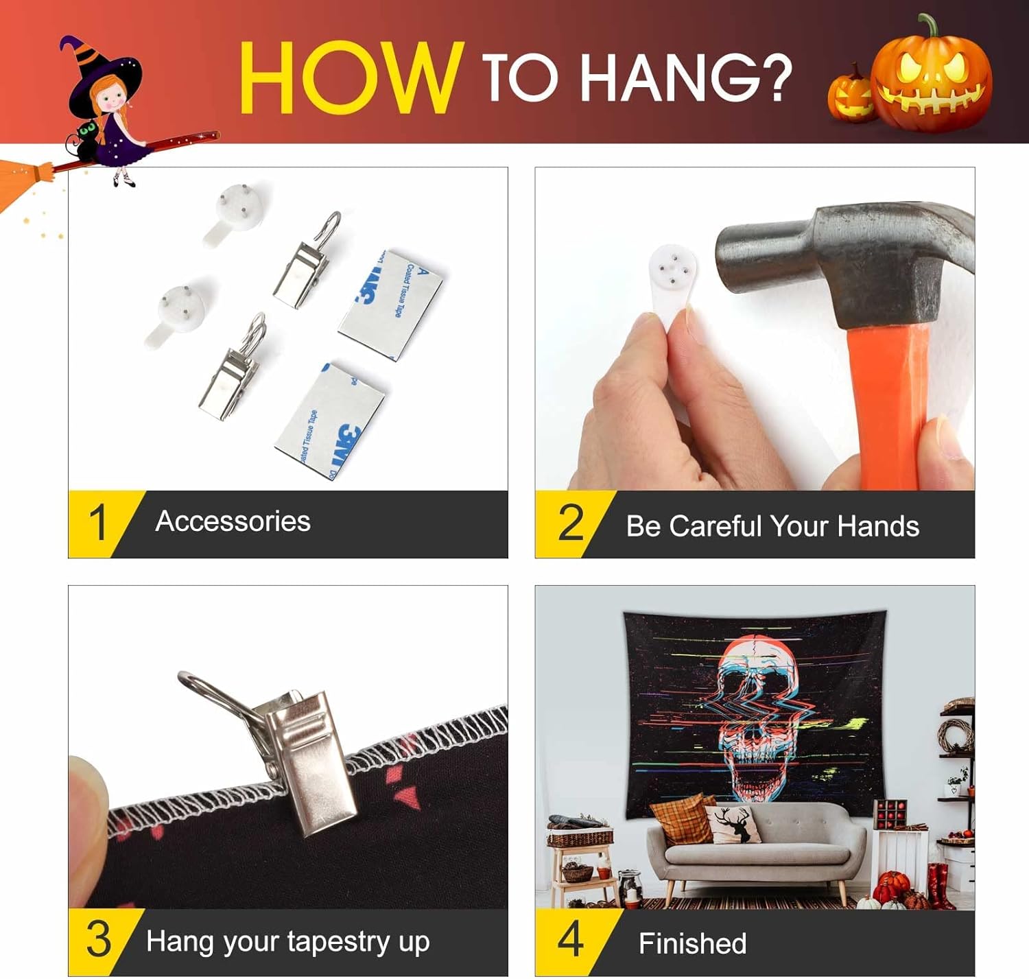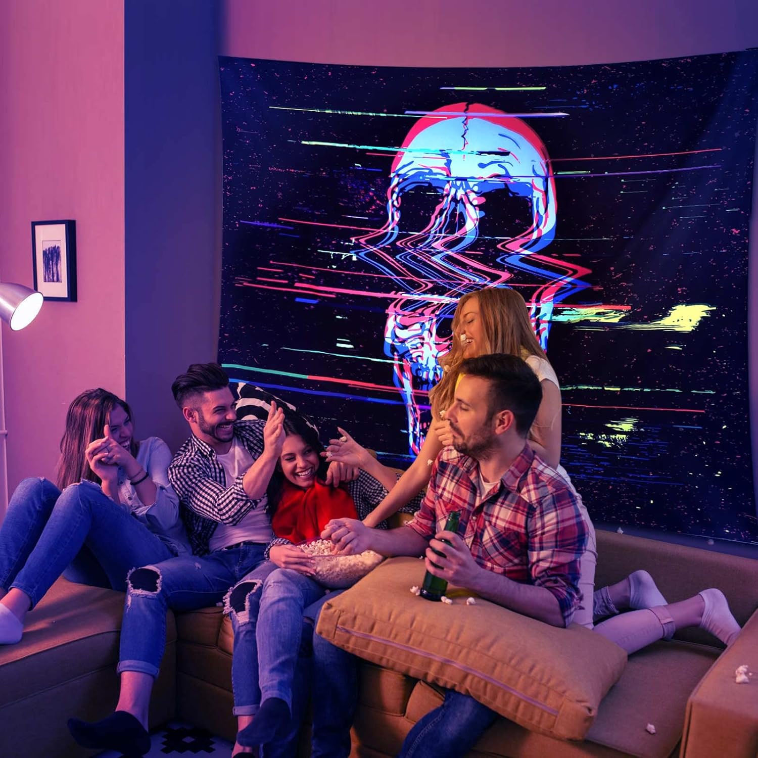 ADDWel Blacklight Skull Tapestry, Black Psychedelic Tapestry Glow In The Dark, UV Reactive Black Light Tapestries Posters Wall Hanging for Room Decor(50 * 60inches)