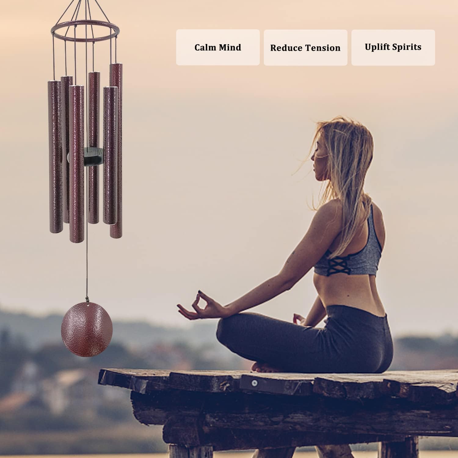 • 36 inch Metal Wind Chimes -Metal wind chimes are more popular due to durability and high tuning accuracy,Total hanging overall length is 36 inches(S hook to windcatcher) with a stronger metal S hook.Featuring a beautiful purple powder coat finish,6 metal pipes of different lengths. which is thicker and longer than normal tubes and heavy duty nylon cording high density striker to ensure the depth of tone and sound transmission.