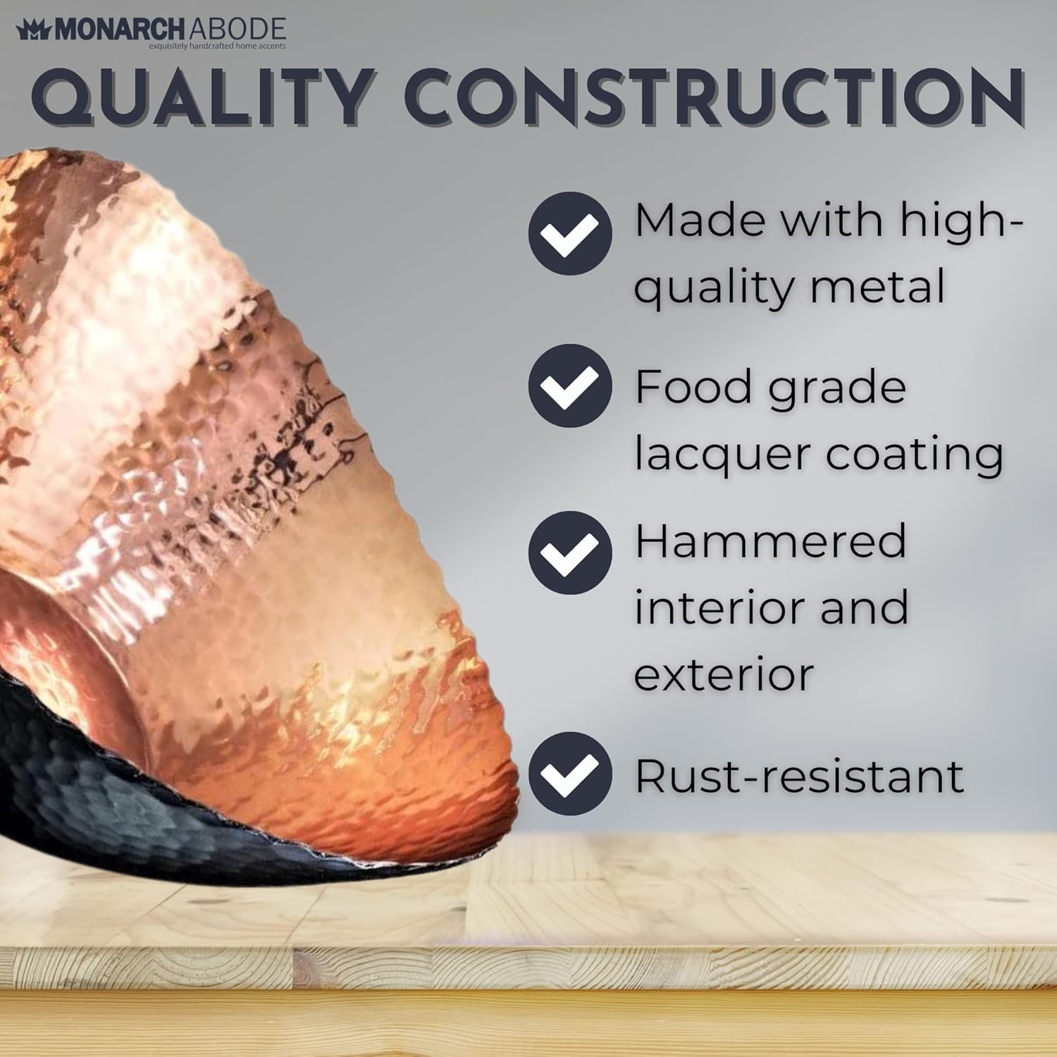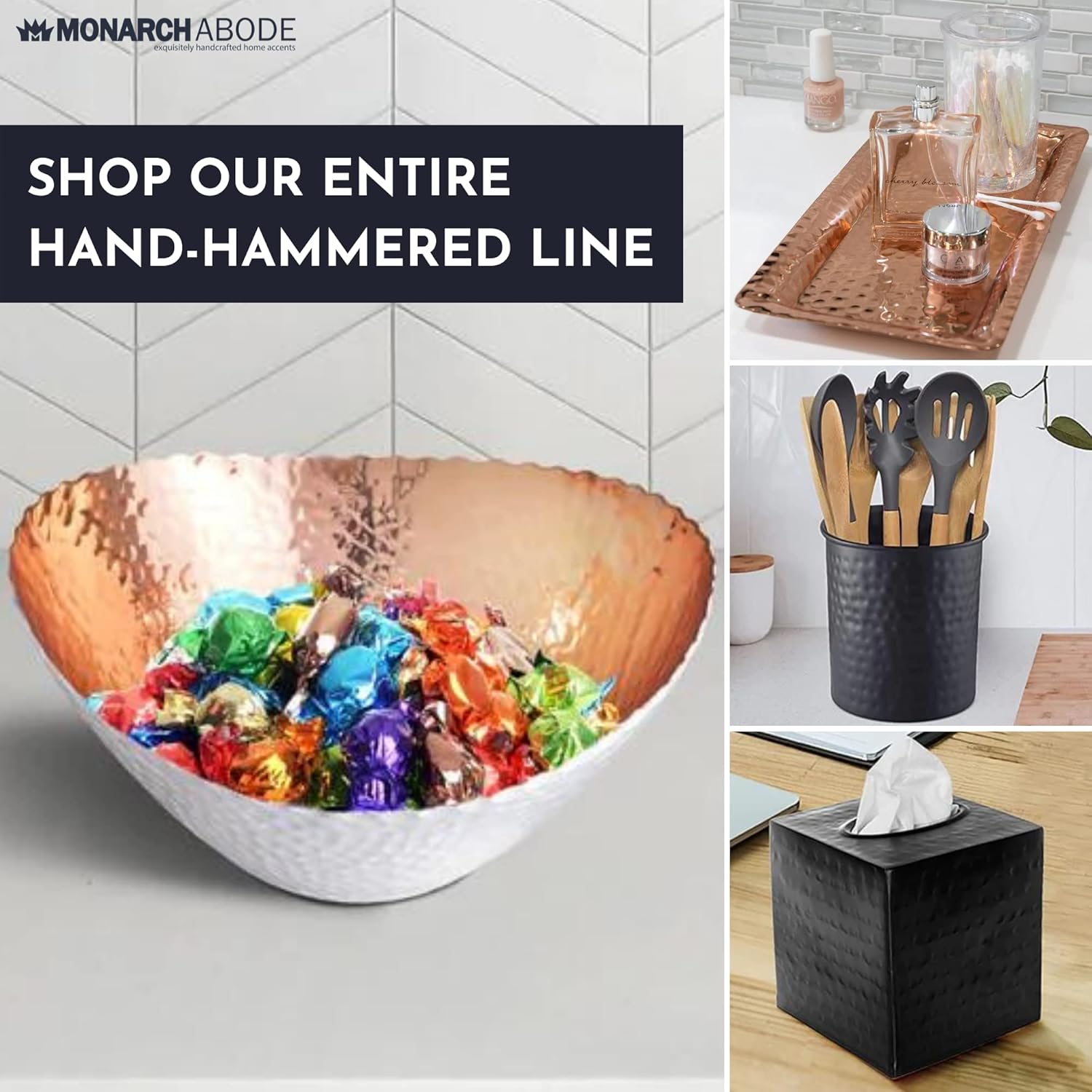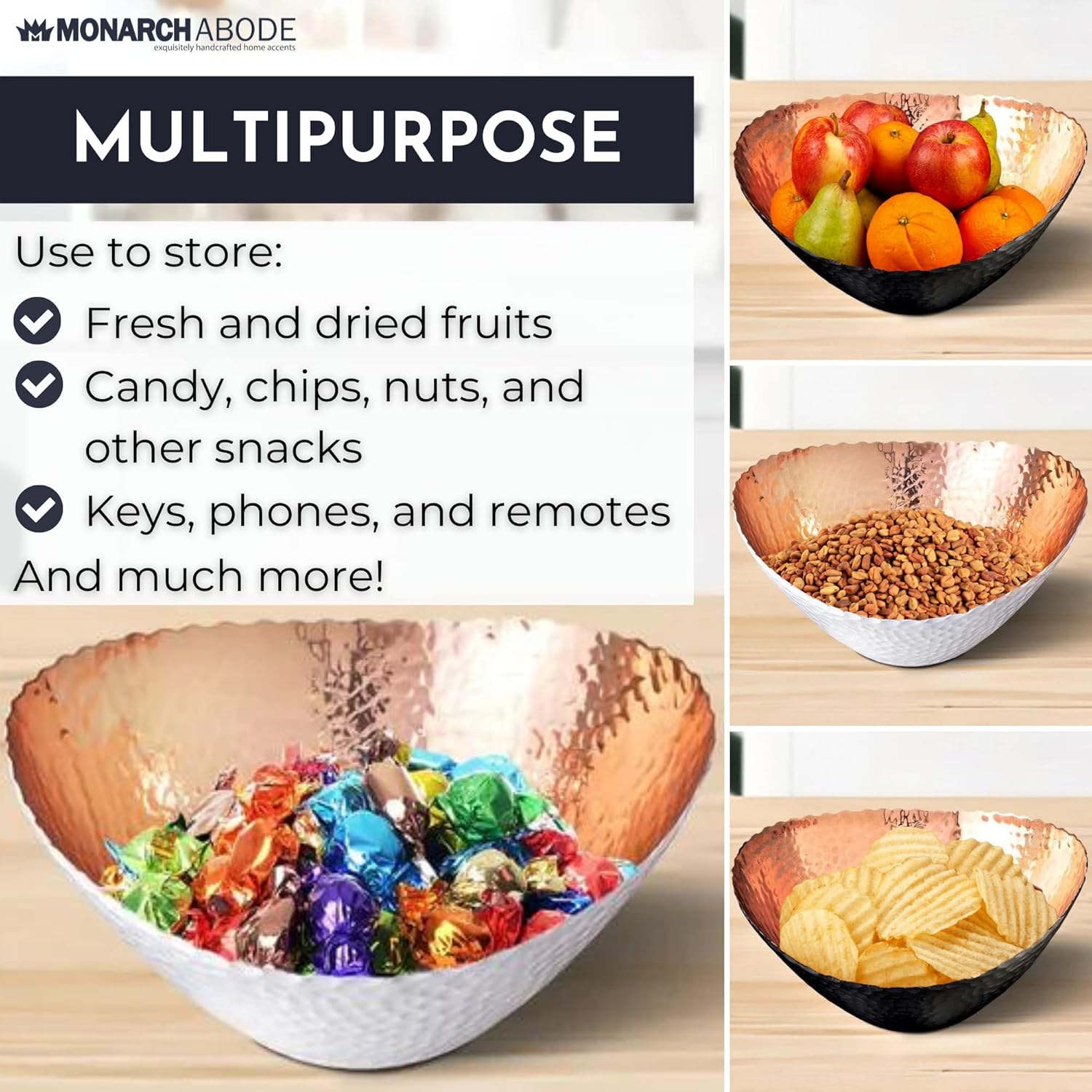 • PERFECT SIZE FOR HOME DECOR: Measuring 7.5 x 6.75 x 3.5 inches, this large decorative bowl is ideal for both practical use and stylish display. Great as a modern fruit bowl, decor bowl, or key dish bowl for entryway table—a standout addition to any room. Its hammered design and exquisite finish make it an attractive centerpiece for any kitchen countertop, dining table, or coffee table, adding a touch of sophistication to your home decor.