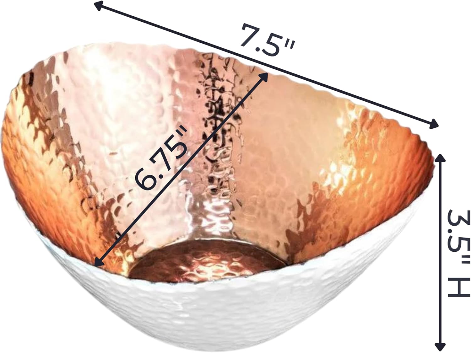• PREMIUM QUALITY CONSTRUCTION: Crafted from durable metal with a luxurious white and copper plating, this decorative bowl features a hand-hammered texture inside and out. Protected with a food-grade lacquer, this key holder bowl resists rust and is built to last with everyday use. The solid aluminum construction ensures these bowls are rust-resistant, making them durable and long-lasting. Ideal for serving snacks, nuts, or holding small trinkets.