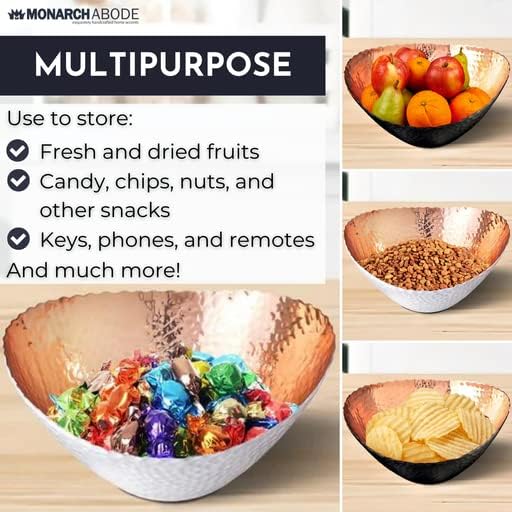 • PERFECT SIZE FOR HOME DECOR: Measuring 7.5 x 6.75 x 3.5 inches, this large decorative bowl is ideal for both practical use and stylish display. Great as a modern fruit bowl, decor bowl, or key dish bowl for entryway table—a standout addition to any room. Its hammered design and exquisite finish make it an attractive centerpiece for any kitchen countertop, dining table, or coffee table, adding a touch of sophistication to your home decor.
