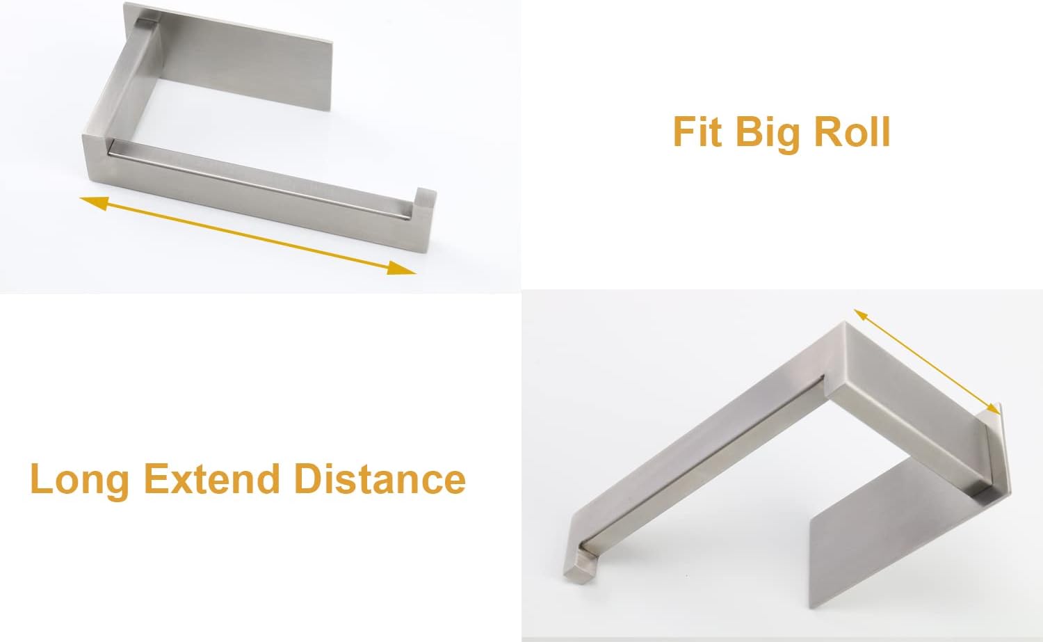 • DURABILITY & RUSTPROOF: Toilet paper holder construct of 304 stainless steel. Suitable for moisture bathrooms and fumes kitchens to used. Moreover, it large area adhesive side can bear weight up to 16 LB.