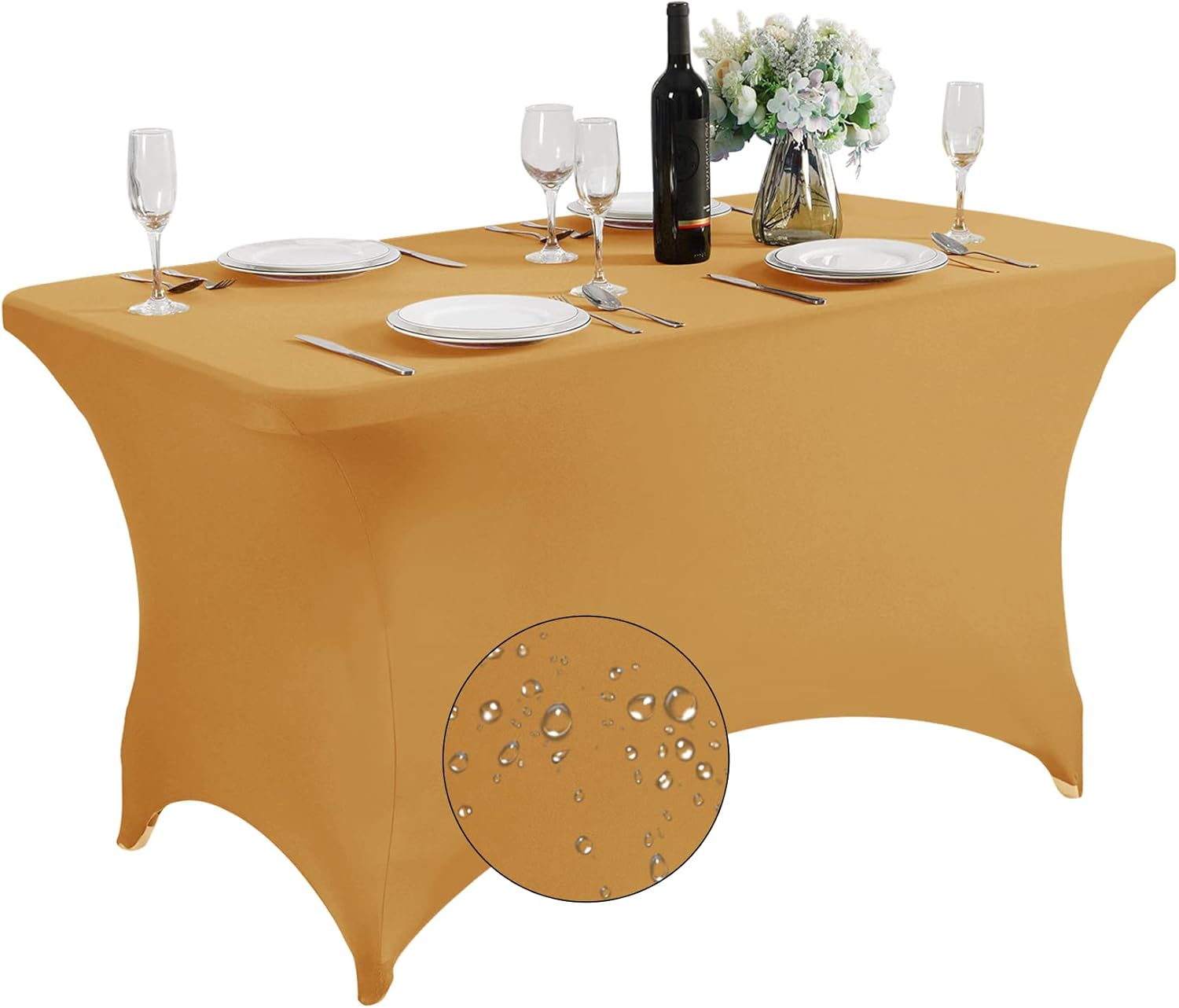 SuperO Waterproof Spandex Table Cover for 4FT Table Universal Fitted Stretch Tablecloth for Party, Banquet, Wedding and Events-Gold