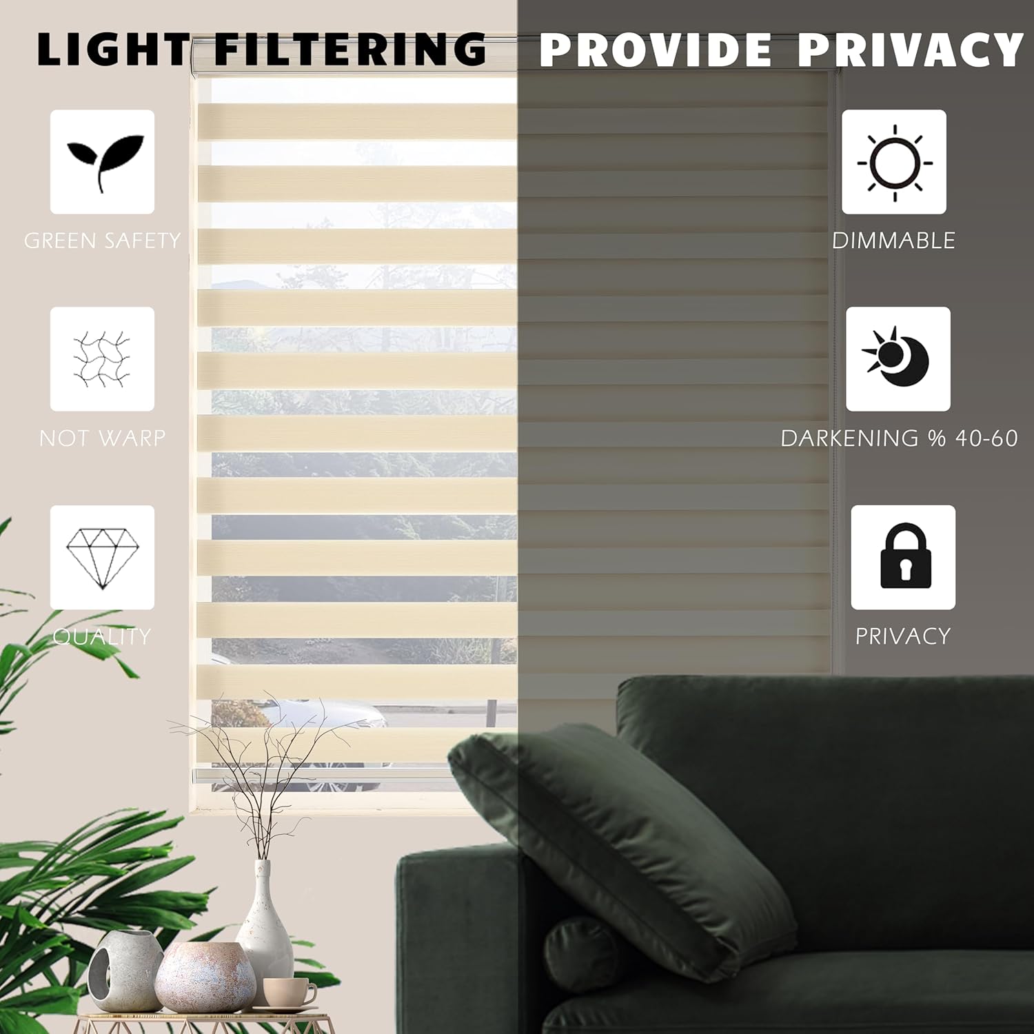 Window Blind Dual Layer Polyester Zebra Roller Light Filtering Sheer Shades Window Treatments Privacy Light Control for Day and Night(W29 x H72(Inch), Cream)