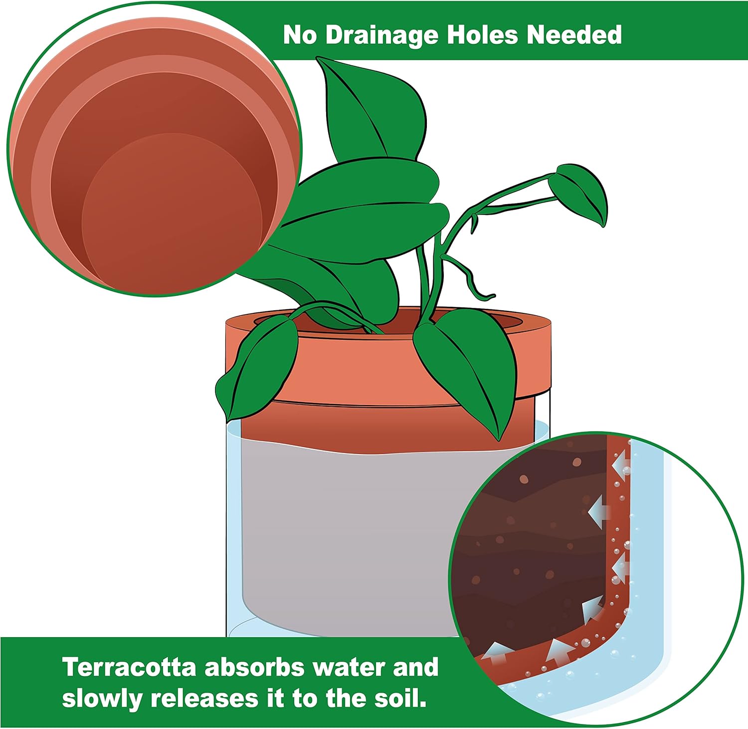 • Self-Watering System: The bottom quarter of the terracotta pot is unglazed, allowing plants to absorb water through the pot walls.