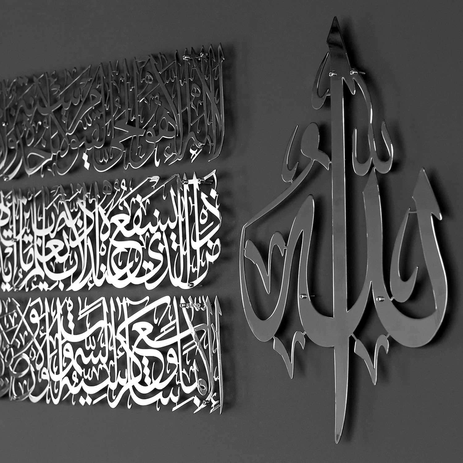 Modern Islamic Wall Art, Ayatul Kursi Metal Artwork, Perfect for Ramadan Decorations, Muslim Housewarming Gifts, Arabic Calligraphy Throne Verse Wall Decor, Ideal Eid Decor (Large, Shiny Silver)