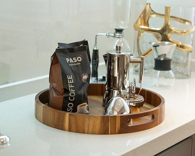 • 【4-COASTERS INCLUDED & RIGHT SPACE】Nested design circular tray(large: 15.75" dia and medium 13.78" dia), there is ample space to store various items. Plus, carrying multiple items from the kitchen to the living room is a breeze. Keep your countertops dry and eliminate dreaded drink ring stains with the four gorgeous rustic wooden coasters.