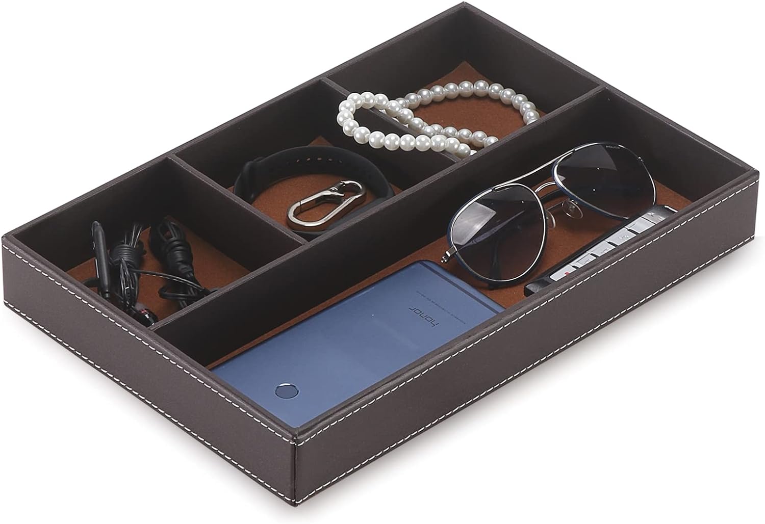 • [Storage tray] This 4-compartment tray can store mobile phones, watches, glasses, money, wallets, coins, keys, jewelry, etc., suitable for bedrooms, offices, halls, dressing tables, bedside tables, desktops, etc.