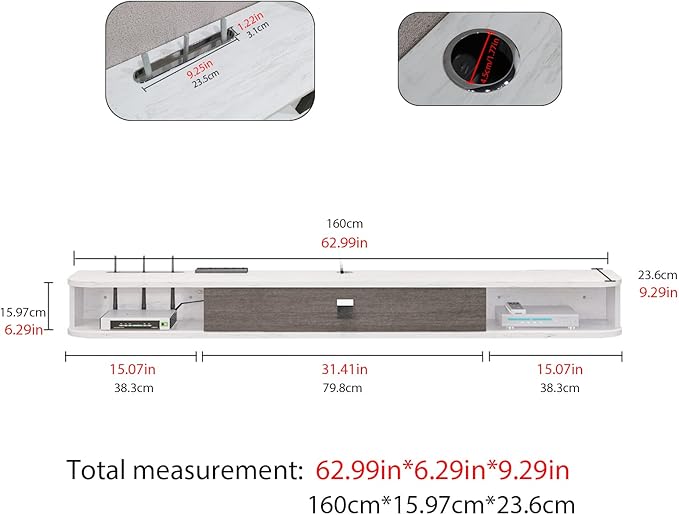 • 【Make your Room Tidy】Equipped with cable hole for hiding set-top box antenna, the floating tv console helps to keep all items in order and easy to get, and keep your items clean and tidy. Contemporary TV wall lamp with creative design is the perfect solution to save home space and optimize space usage.