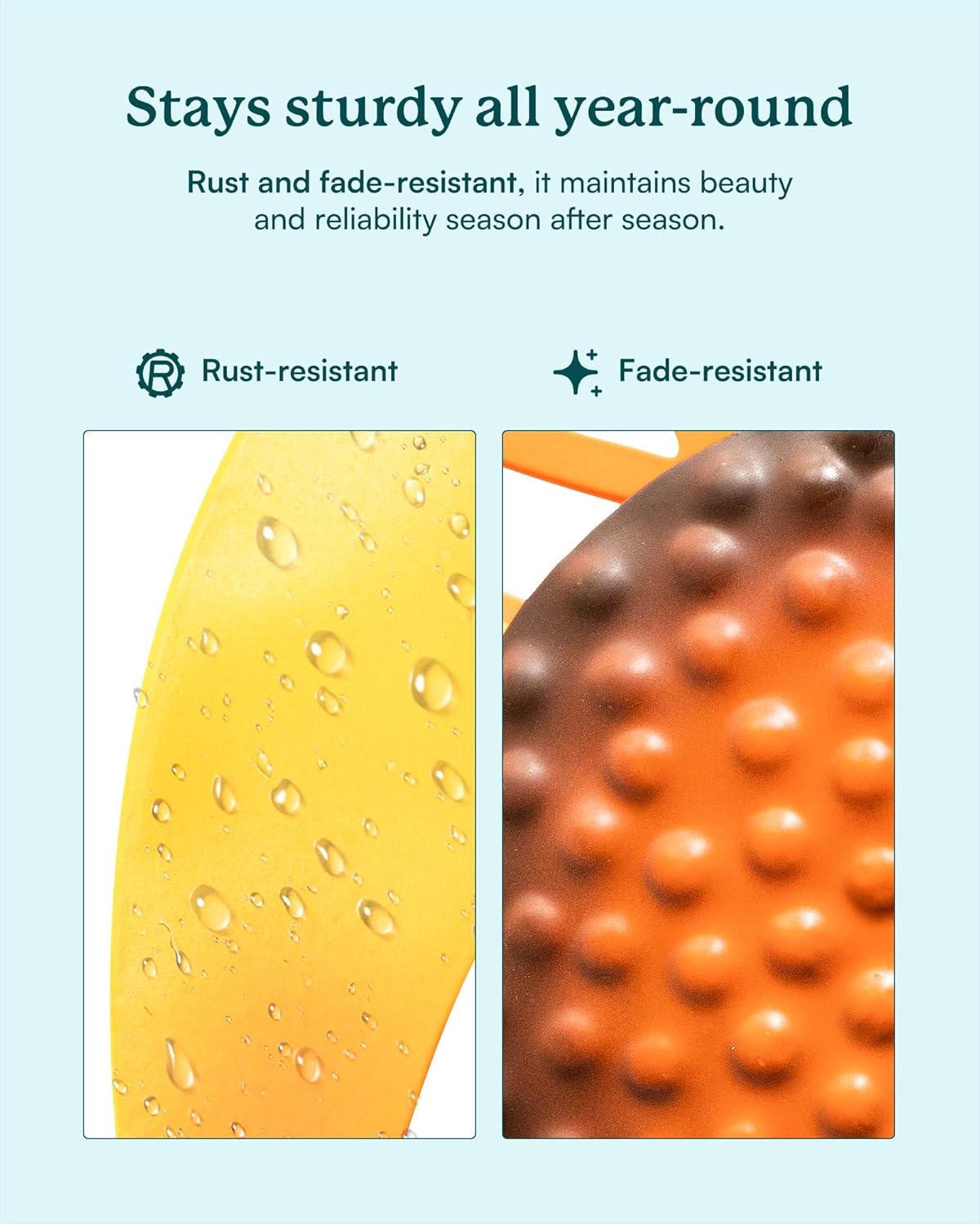 • 【Durable Weather-Resist Construction】Made of sturdy iron with a rust-resistant finish, this decorative spinner withstands sun, rain, wind, and other bad weather. The protective coating ensures UV and fade resistance for year-round beauty with minimal maintenance.