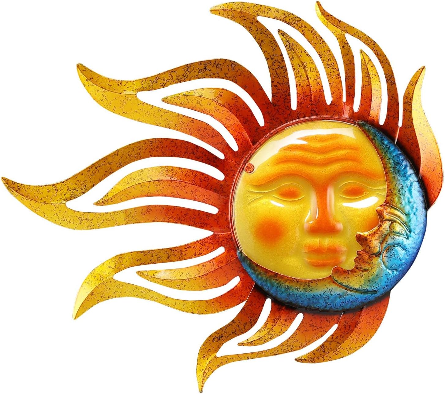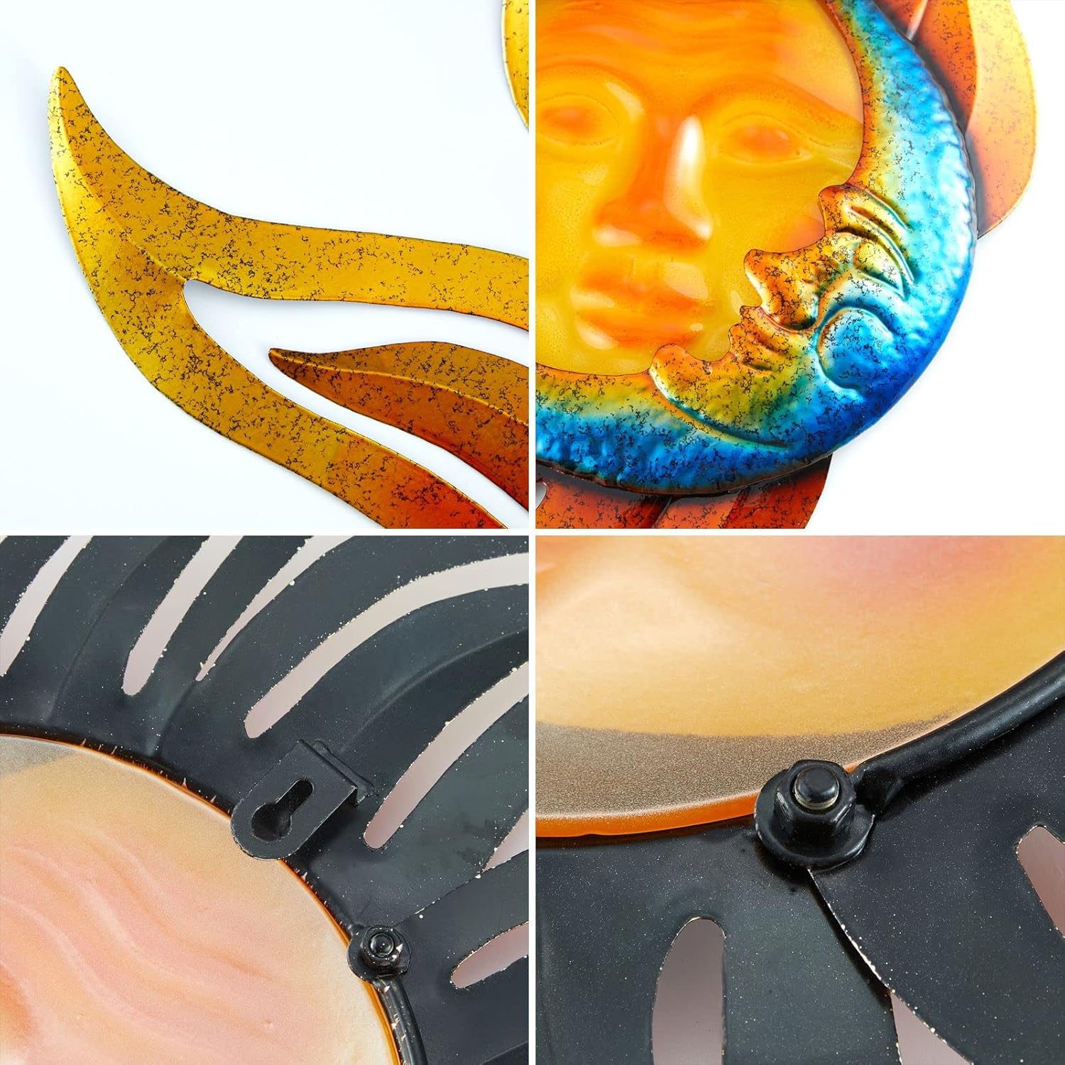 • The sun and moon outdoor wall decoration is made of metal and glass, which is durable. The shape of sunshine and smiling face brings happiness to your family members & friends.