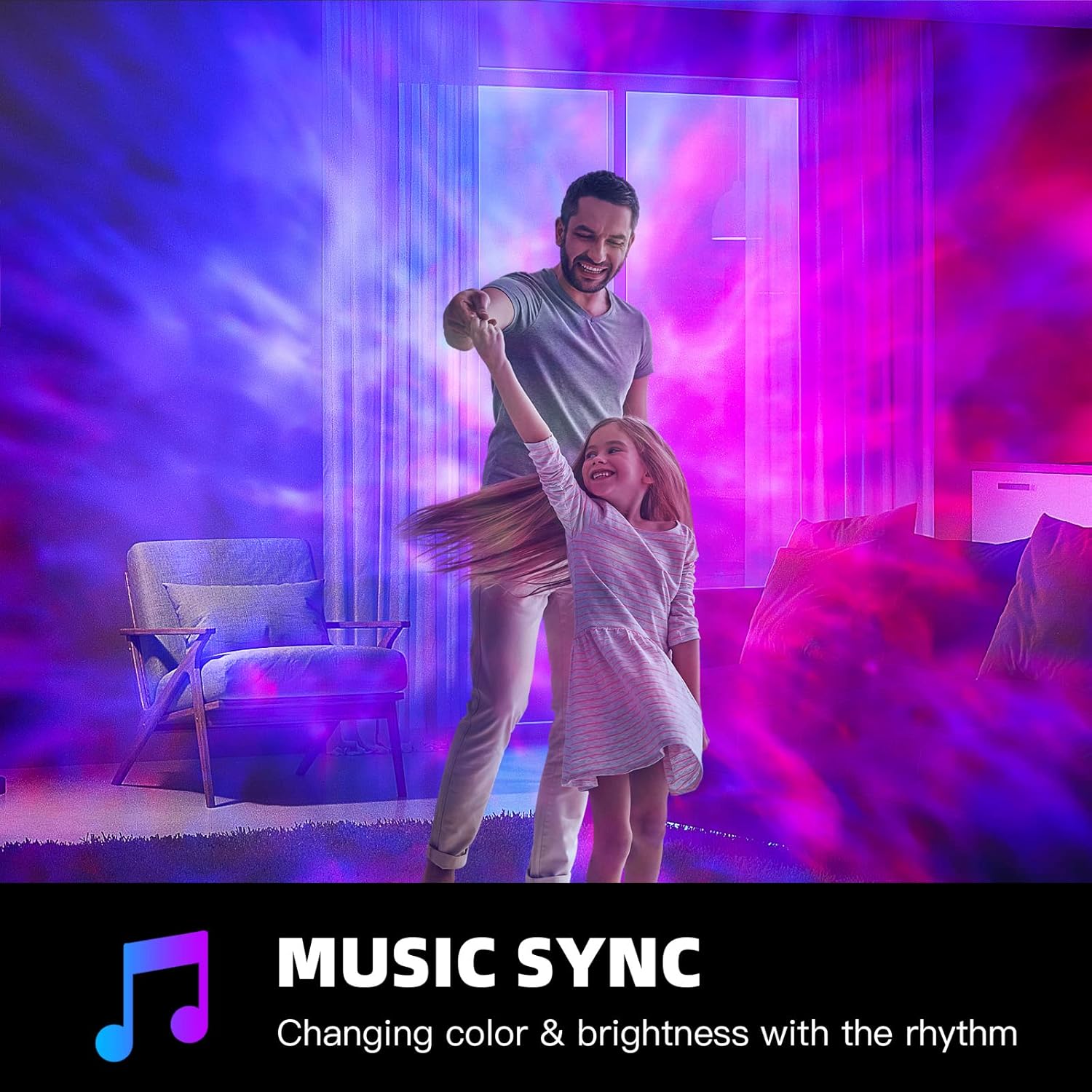• [Music Sync & DlY Modes】 The smart star projector will synchronize with themusic collected by the microphone, with 6 music modes for you to choose from.Give kids the freedom to add colorful lighting or ask Alexa to start a dance party fora music and light show. lt also has up to 16 million colors, with music to create aromantic, relaxed and cheerful party atmosphere.