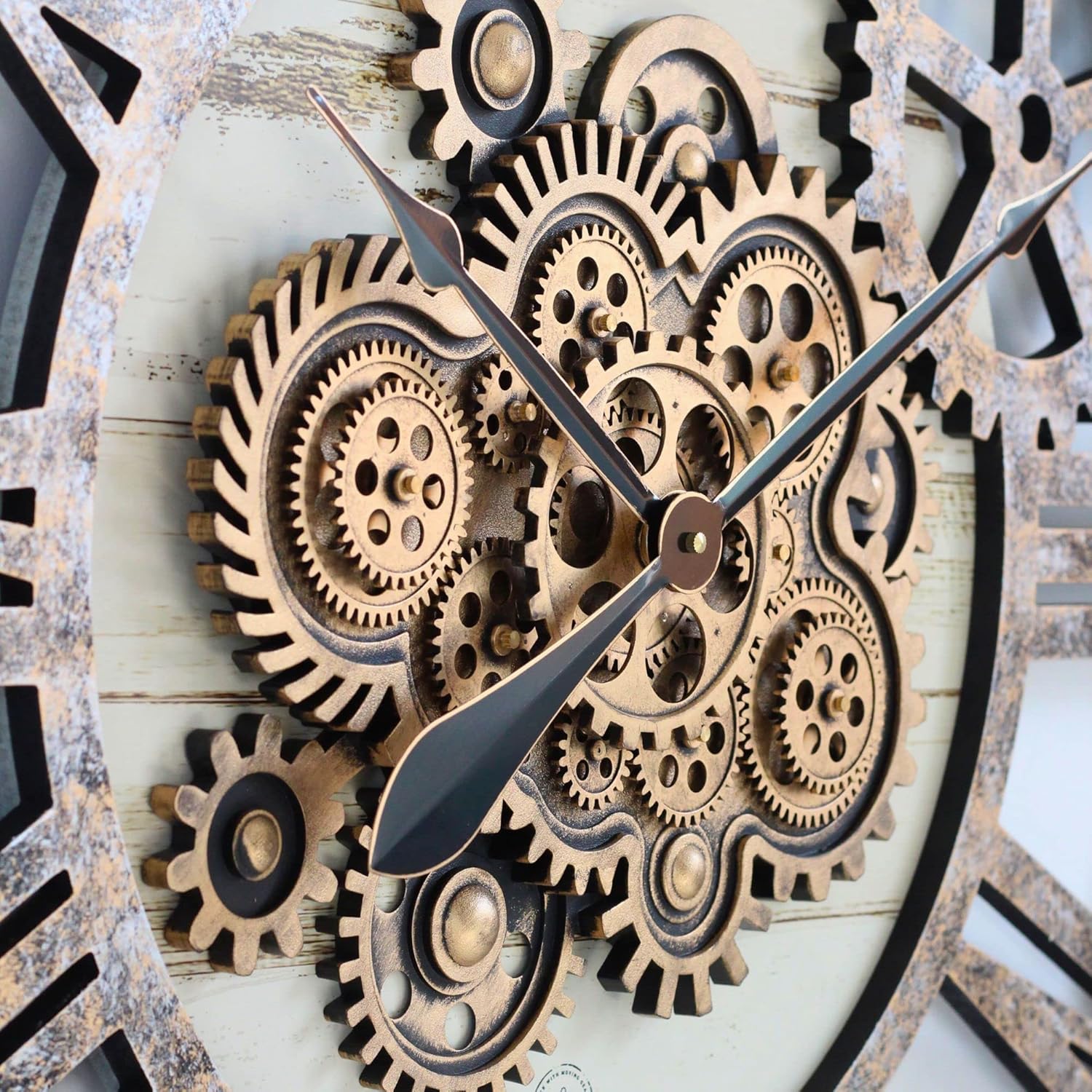 The Gears Clock 36'' Inch Real Moving Gear Wall Clock Vintage Industrial Oversized Rustic Farmhouse (Desert Beige)
