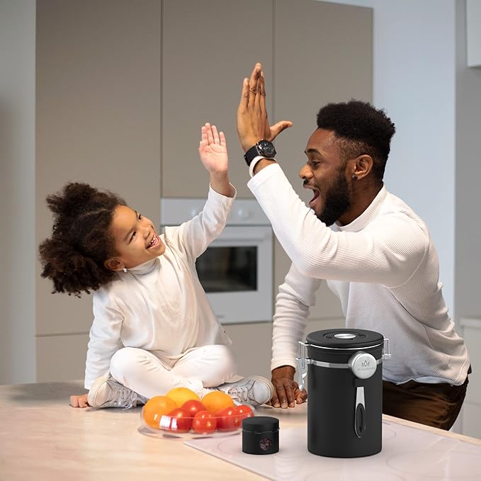 • 【Humanized design】: This coffee storage containers comes with a thoughtful design and an adjustable date tracking wheel above the container, so you can always check the storage date to know the storage time.