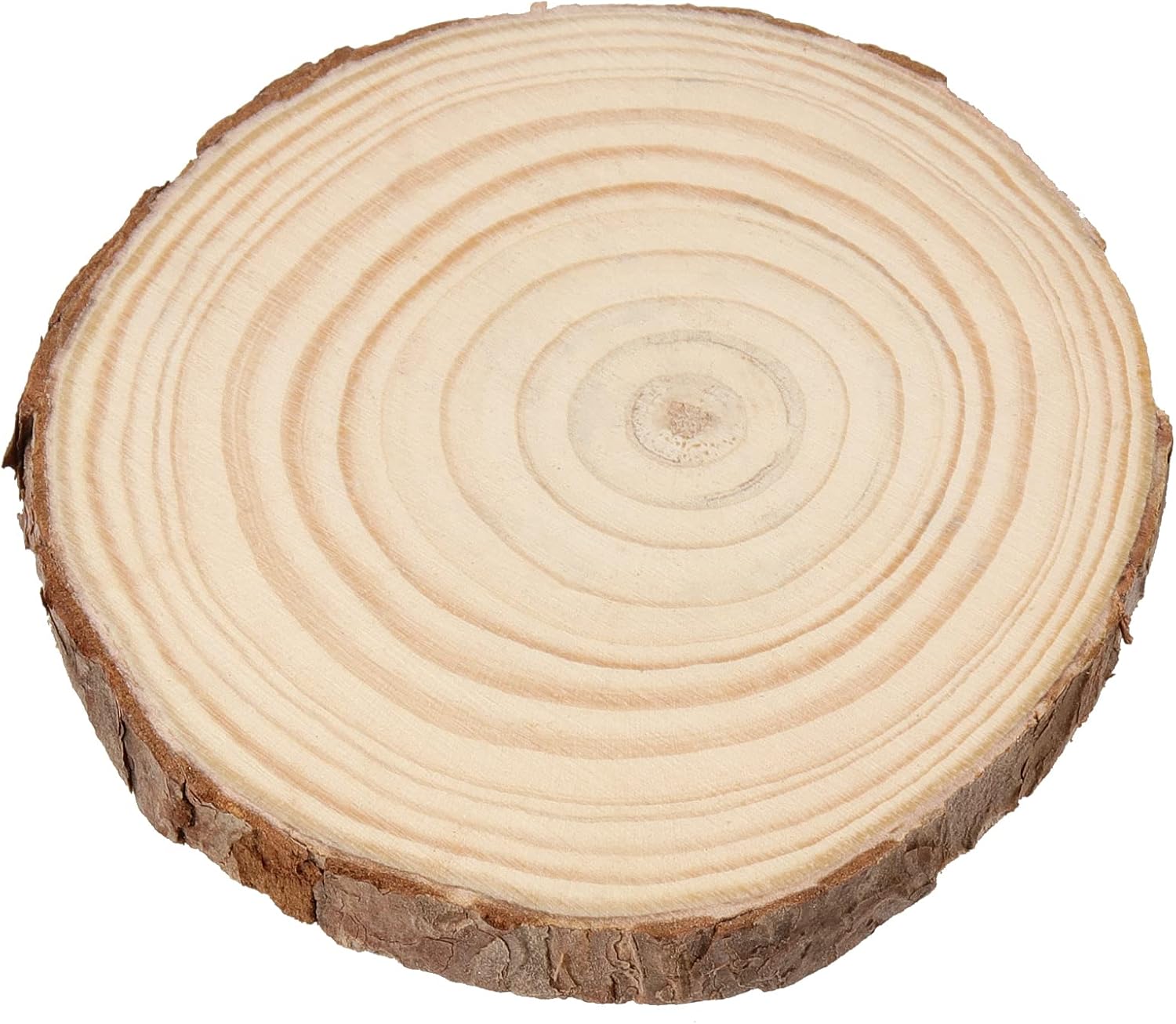 • PACK OF 8 - There are 8 pieces wood circles in the package. They are pre-cut into 0.78 inch thick wood slices which come in sizes ranging from 6-7 inches in diameter. Good size can meet your various crafting needs.