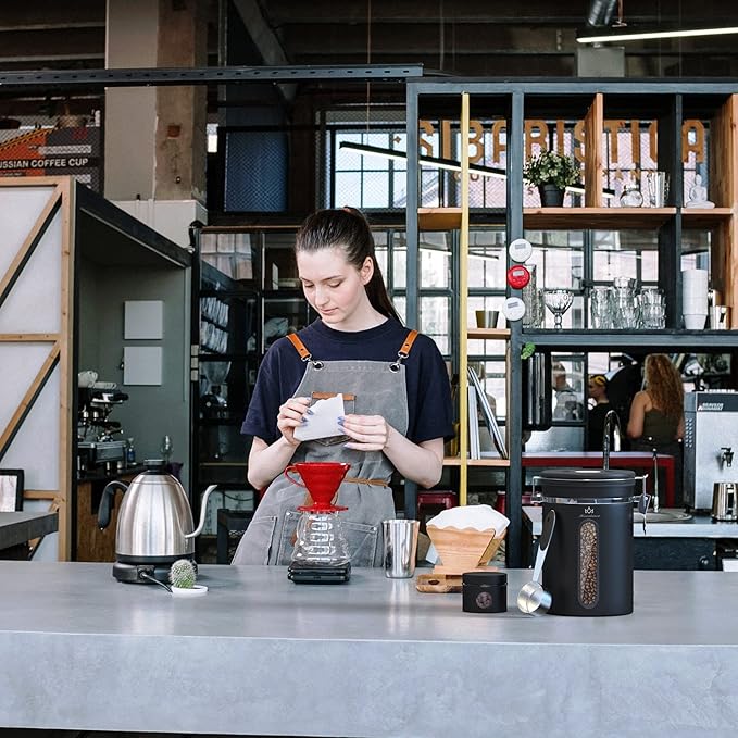 • 【Date tracking and airtightness】The coffee canister is designed with a lock, the lid is equipped with a silicone gasket, and there is a date tracking wheel on the top of the lid. The shelf life can be set when the coffee is loaded. The next time you open it, you will know how long it will be stored.