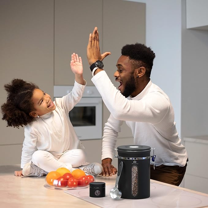 • 【Date tracking and airtightness】The coffee canister is designed with a lock, the lid is equipped with a silicone gasket, and there is a date tracking wheel on the top of the lid. The shelf life can be set when the coffee is loaded. The next time you open it, you will know how long it will be stored.