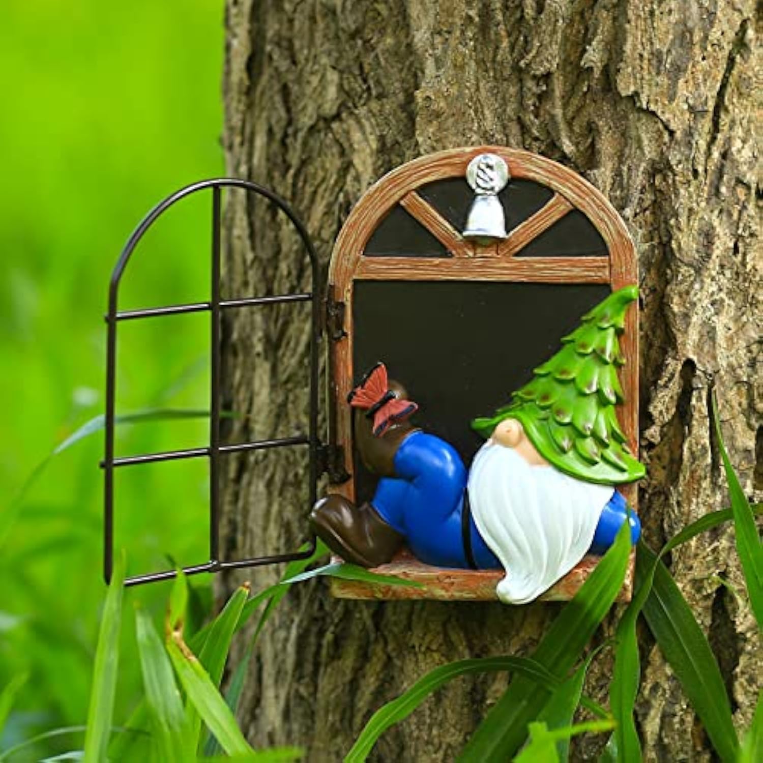 Whimsical Fairy Garden Gnome Statue, Tree Faces Decor Outdoor -5.9 Inch, Funny Garden Tree Decoration,Ideal Patio Yard Lawn Porch Decoration