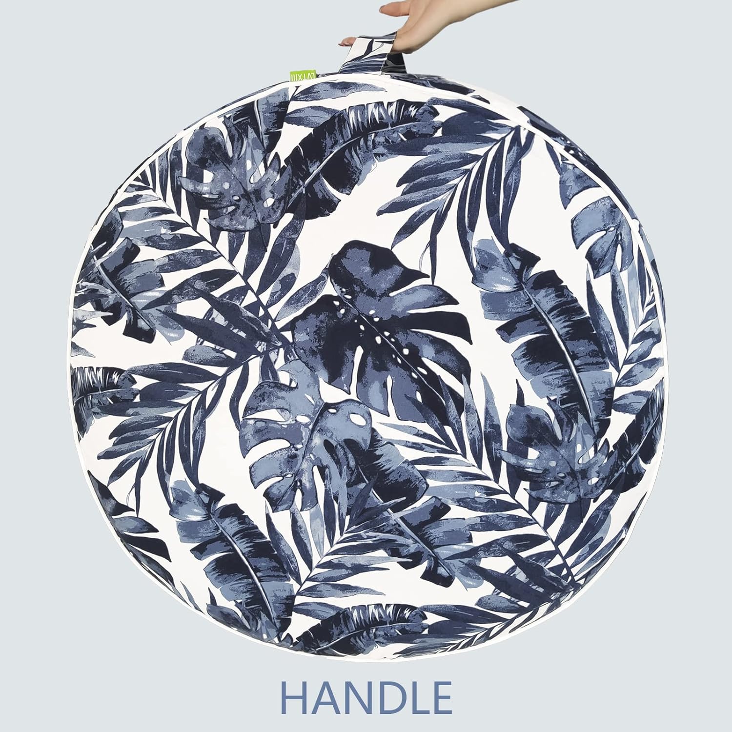 LVTXIII Outdoor/Indoor Inflatable Ottoman, 31"x31"x14" Patio Footrest Stool, Portable Round Pouf Ottoman for Patio Garden, Camping or Home Decoration, Palm Blue