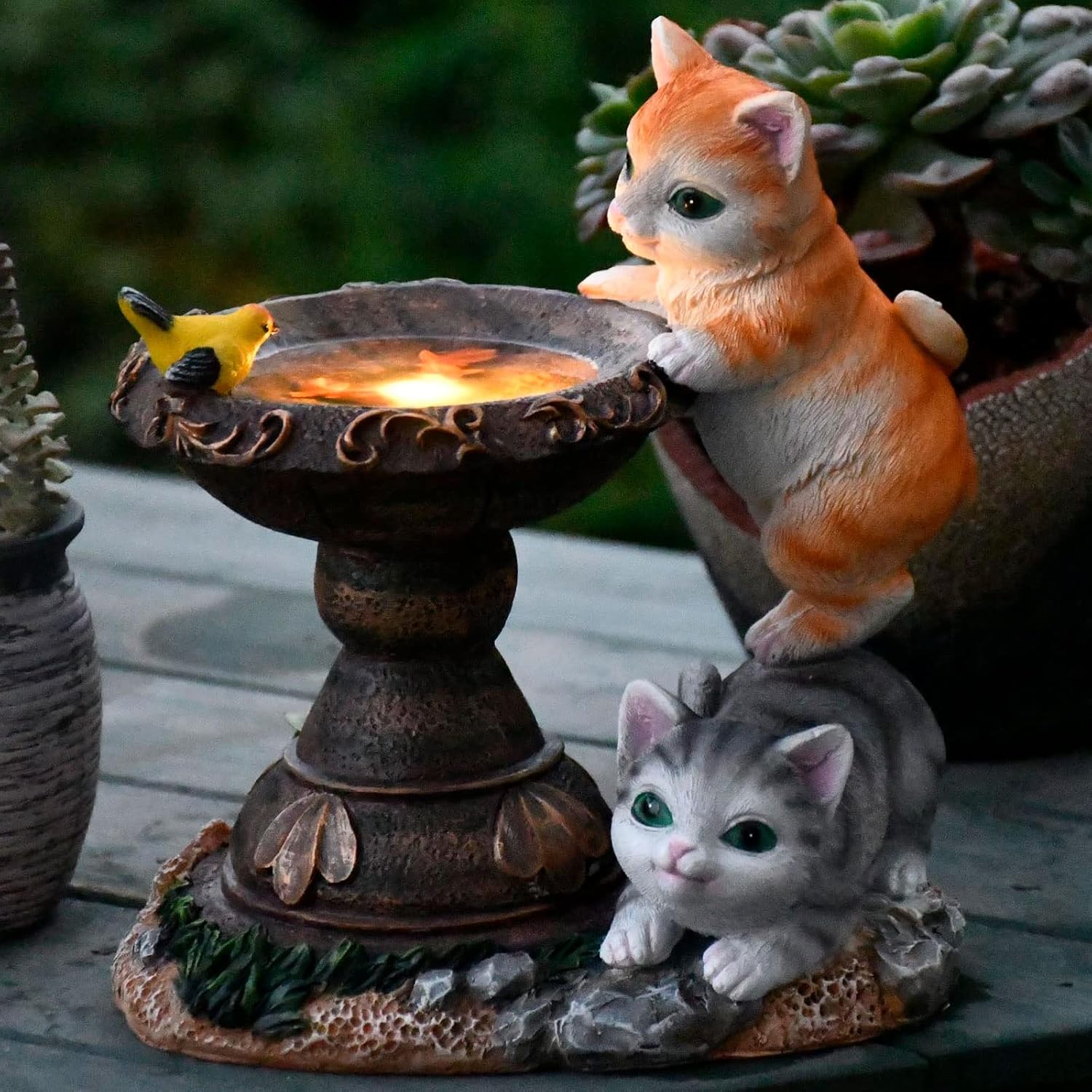• ▶ Durable and Waterproof - This outdoor solar cat garden statue decor can withstand all types of weather conditions including heavy rain and snow. Cat figurines made of high-grade resin, you don't need to worry about color-fading or water leaking.