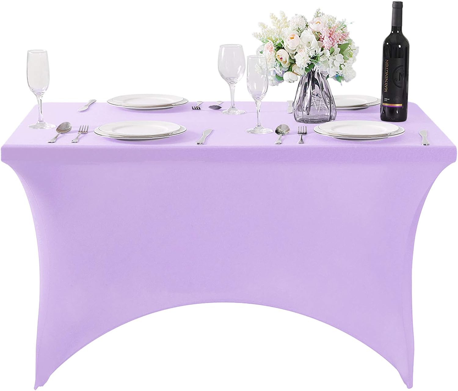 2Pack Spandex Table Cover for 4FT or 6ft or 9ft Table Universal Fitted Stretch Tablecloth for Party, Banquet, Wedding and Events-Lavender