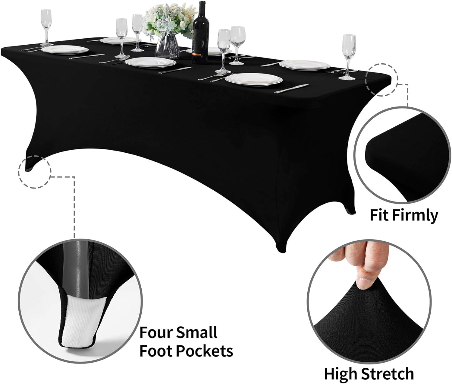 • Easy to use: Easy to set up with four-way stretch spandex material and four pockets for legs are designed for keeping the tablecloth securely in place to fit your table better.