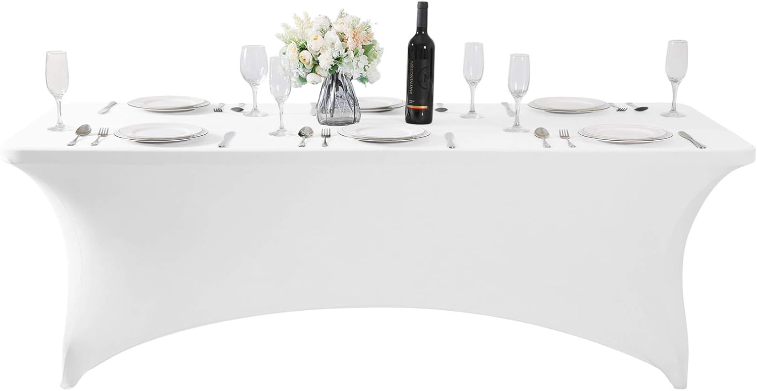 2Pack Spandex Table Cover for 6Ft or 4fT or 8ft Table Universal Fitted Stretch Tablecloth for Party, Banquet, Wedding and Events-White