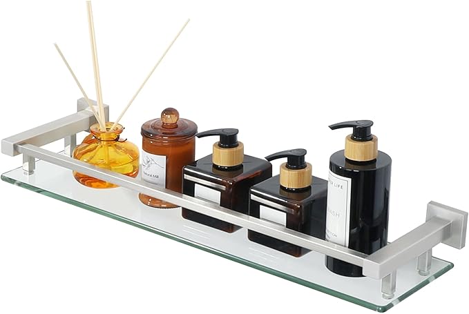 Alise Bathroom Shelves,Brushed Nickel Glass Shelf for Bathroom, Modern Floating Shelves,20 inch