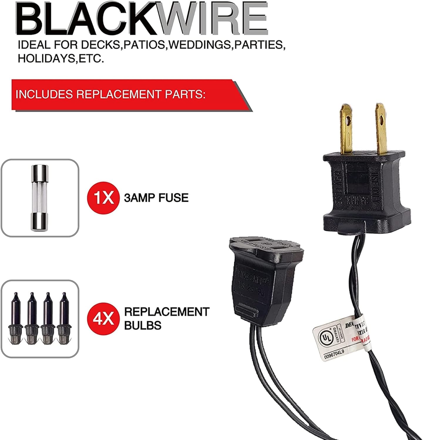 • Charming Halloween Lights: Package include 1 x 20ft mini string light, 1 x spare fuse, 4 spare incandescent bulbs. The lighted length of Halloween clear string light is 18.5 ft, the leading wire is 1.5 ft, and the bulb space is 2.25 inch, work voltage of each bulb is 2.5V / 0.42W, safety with built in 3A fuse.
