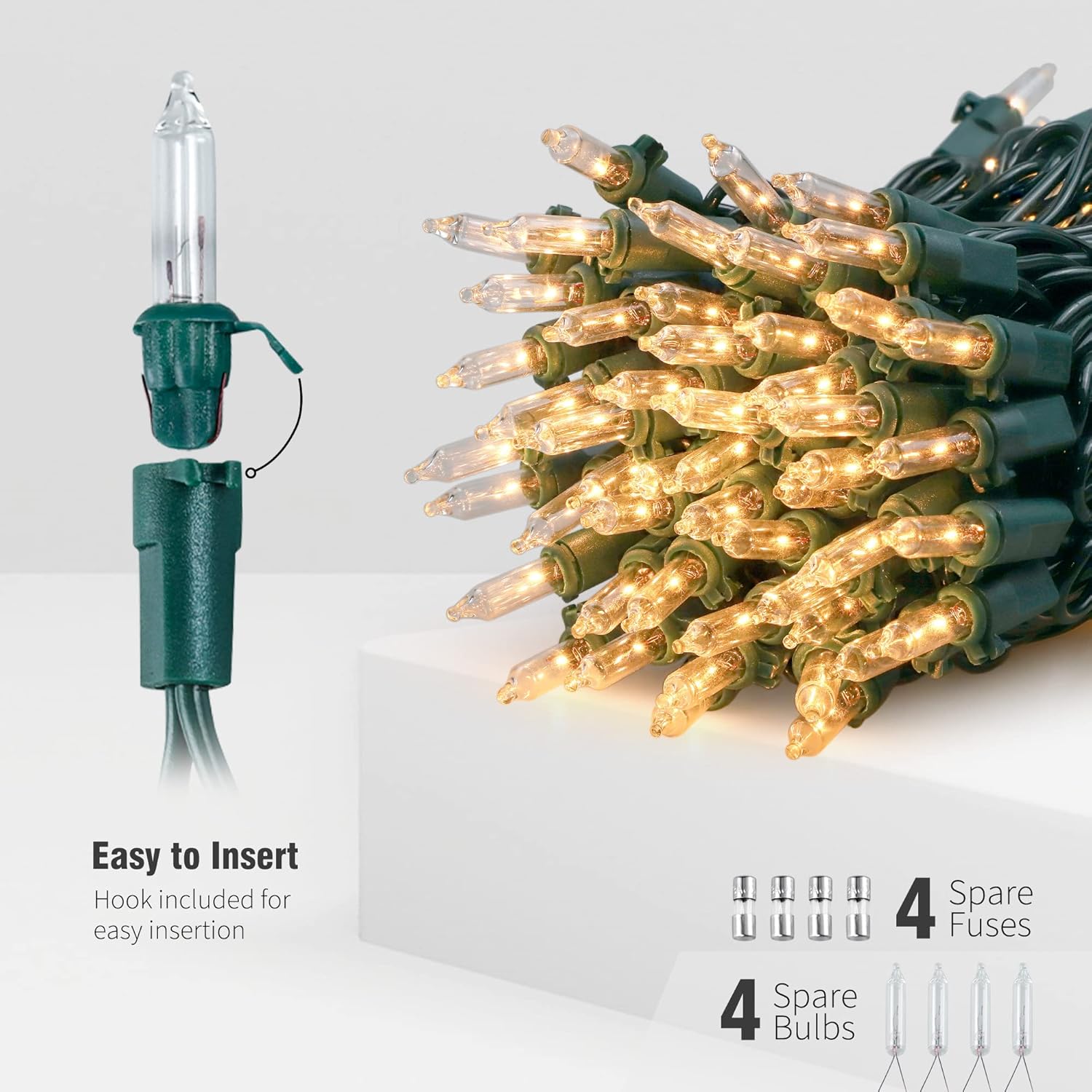 • Green Wire Christmas String Lights:Beewin old-fashion incandescent Christmas lights,2PACK 50Count 13Feet Clear Christmas Mini String Lights,each set comes with 4 Extra Bulbs & 4 Replacement Fuses.Perfect for indoor or outdoor decoration.