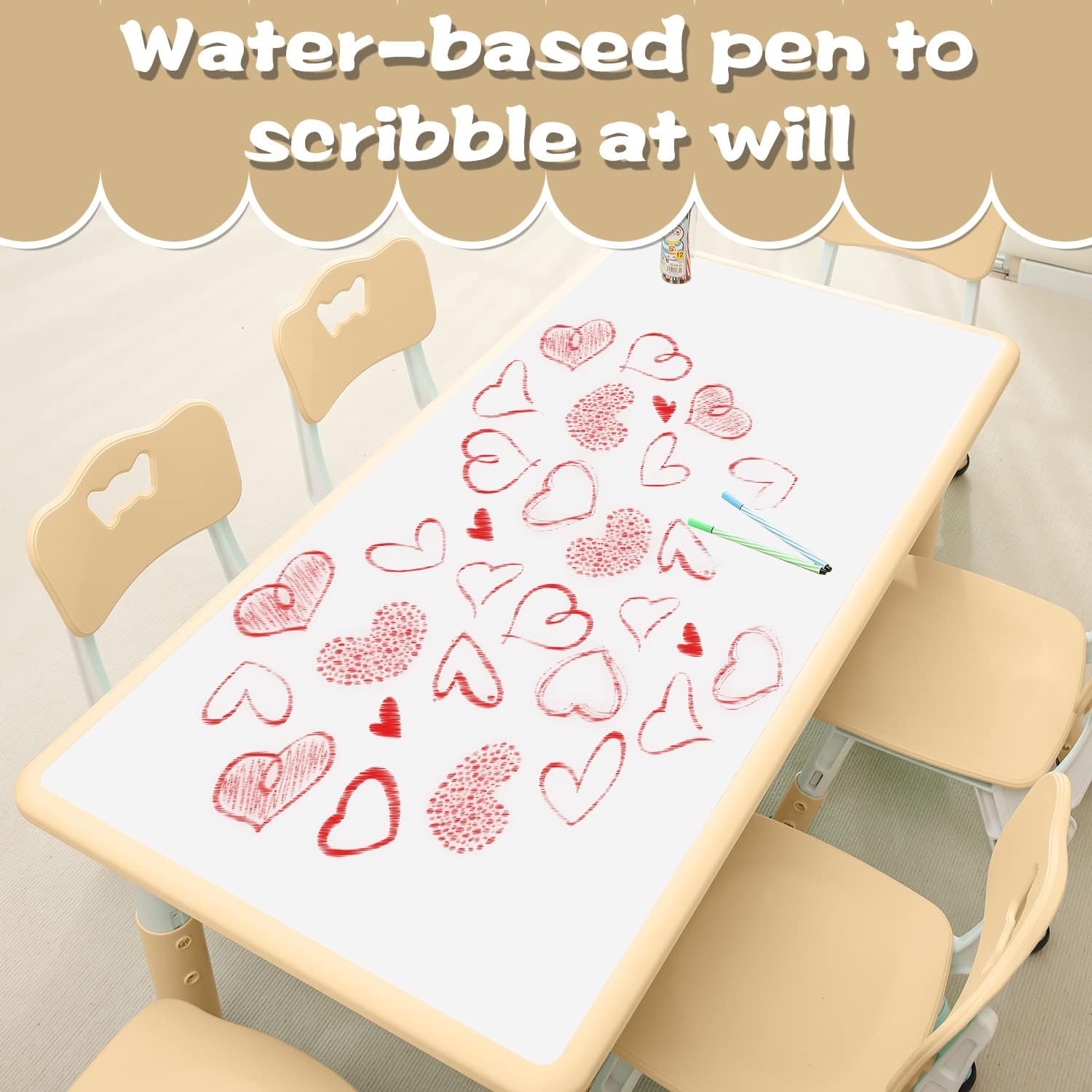 • Multipurpose Desk and Chair Set: Your kids can paint, craft, eat and drink, just do everything on this desk. It provides your baby with a relaxing space to unleash artistic potential. The table top is made of polyurethane coating to make it more waterproof and crack resistant. So watercolors, colored pencils, and crayons can all be wiped off with a damp cloth. NOTE: A damp cloth is recommended for cleaning.