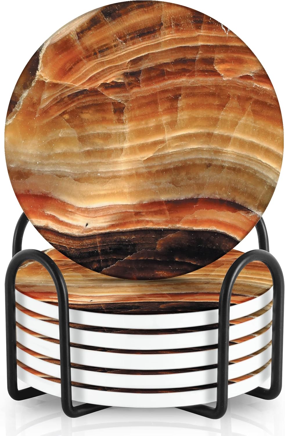 • ✅ LARGE SIZE – Our special material ceramic makes the coasters great for drinking beverage glasses, cups and mugs. Giftable idea for family, friends, women and men. Our wide selection includes black, grey, white, gold, brown, funny, mid century pattern, geometric, geode, rustic, minimalist and industrial style. Protects surfaces and absorbs faster than sandstone, soapstone, tile, cork, silicone, quartz, porcelain or marble.