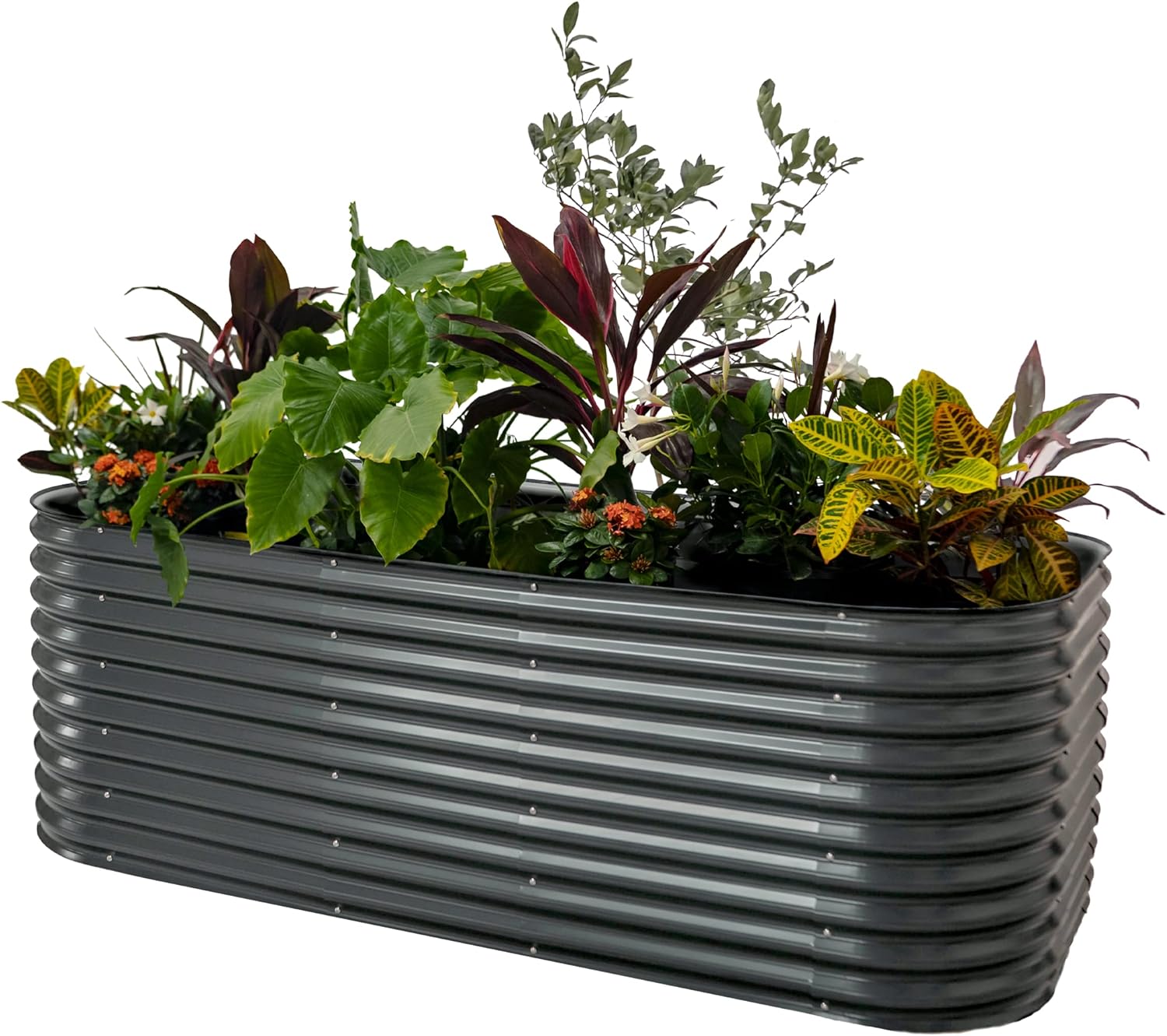 Vego garden 32" Extra Tall Raised Garden Bed Kits,10 in 1 Modular Raised Planter Box for Vegetables Flowers Fruits Oval Metal Raised Garden-Modern Gray