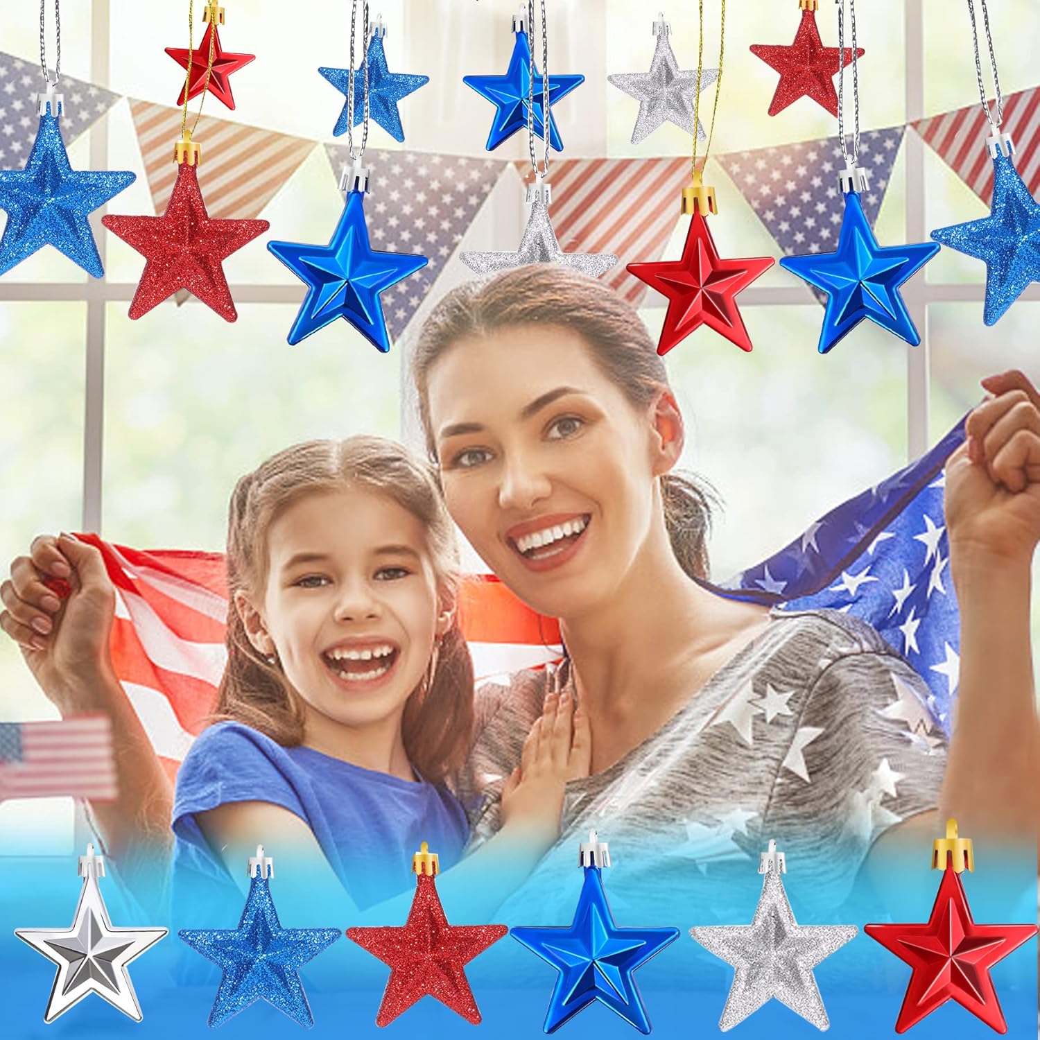 • Durable Material: The star shaped hanging ornaments are made of durable plastic with vivid printing, eye-catching. The design of the facade makes the stars distinct, the color design of red, blue and silver can be well matched with the decoration of other patriotic themes. Can be used multiple times.
