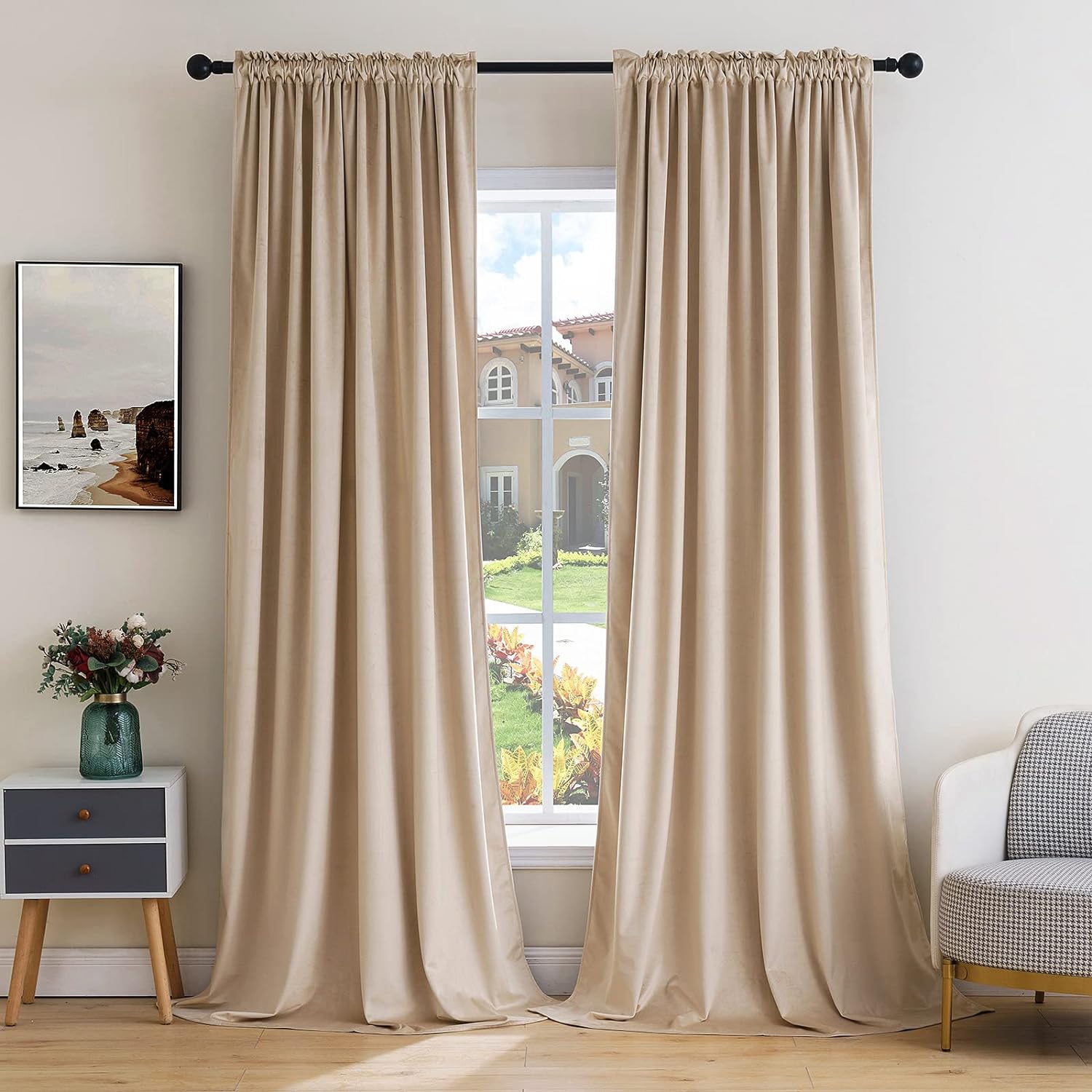 MIULEE Camel Beige Velvet Curtains Thermal Insulated Blackout Curtain Drapes for Bedroom Living Room Darkening 108 Inches Long Curtains Panels Rod Pocket Set of 2