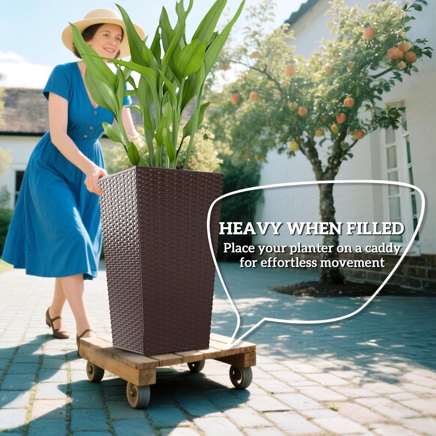 • Natural and Stylish Aesthetic: The tall planters in rattan pattern add a warm, organic texture to outdoor spaces, blending well with boho, tropical, or modern rustic decor
