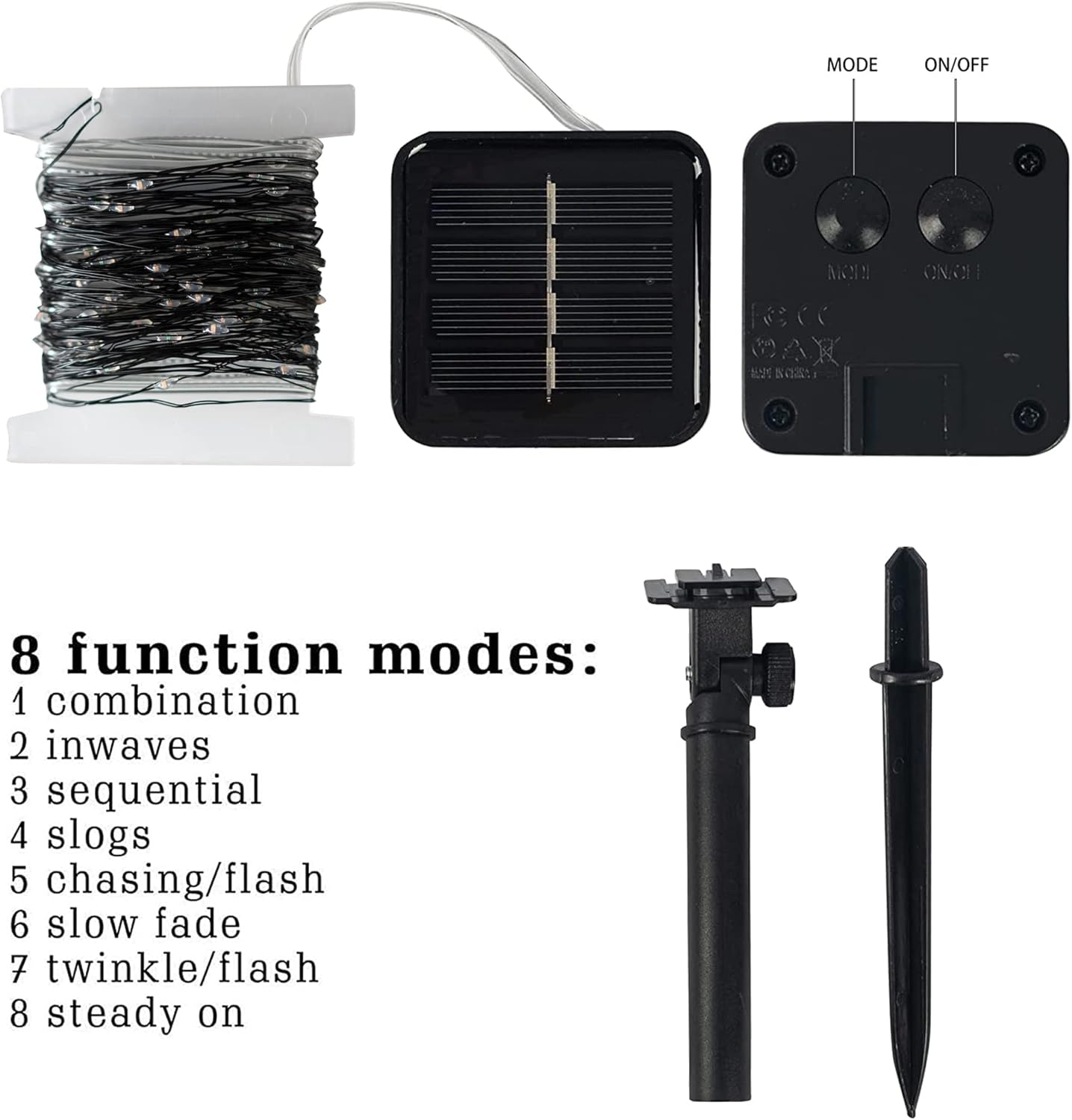 • IP44 Waterproof Solar Lights: Both the copper wire and the solar panel are IP44 waterproof, it withstands all kinds of weather, including heavy rain and snow, suitable for both indoor and outdoor usage without any worry of short circuits or weather damage. Perfect for outdoor indoor patio, home, garden, lawn, courtyards, stairs, front door, Christmas tree, fence.