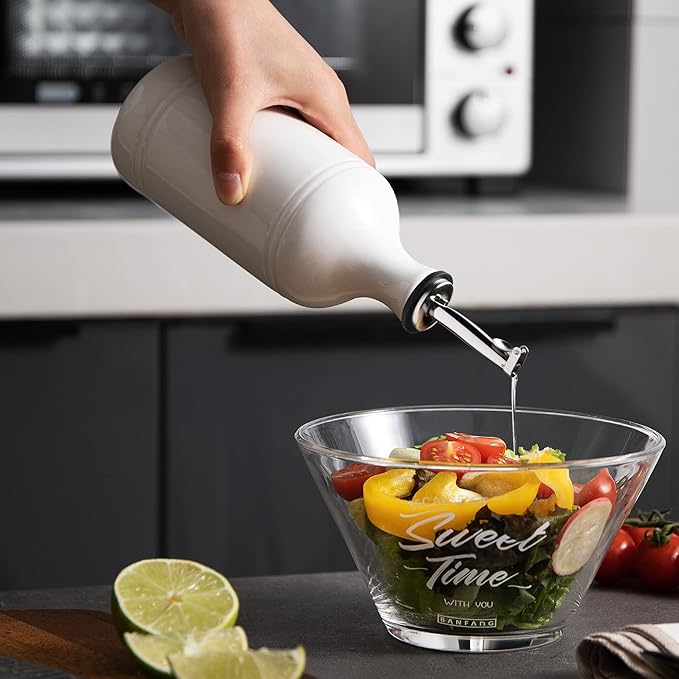 • Leak Proof & Keep Liquid Fresh - The bottle is made of durable ceramic that creates a smooth glaze. And the opaque porcelain bottle protects the oil from light and makes it last longer.