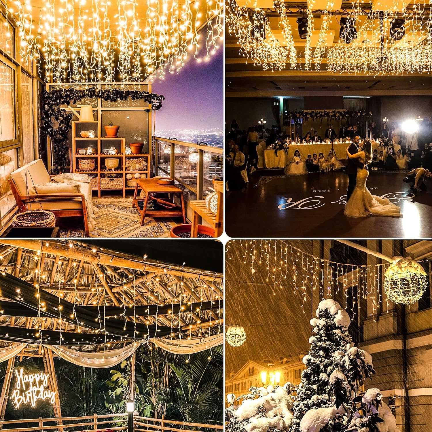 • [Easy to Install&Wide Application] The wires of the icicle Christmas lights are clear and without tangles, will not twist, very easy to install and lighter weight than the traditional lights. These icicle lights are perfect for outdoor, indoor, bathroom, handrail, fence, balcony, garden, roof line, deck railing decoration.