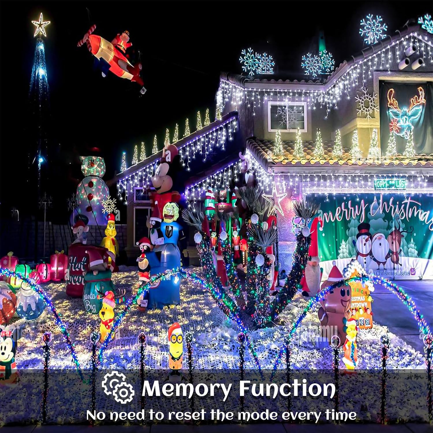• 【Connectable & Waterproof】 Each icicle Christmas lights comes with end-to-end connector, maximum of 3 strings can be connected.This icicle lights outdoor is waterproof for outdoor use, so don't worry about it getting wet in rain or snow.Just protect the plug from the water.This icicle fairy lights is your best choice for Outdoor Indoor Christmas decorations.