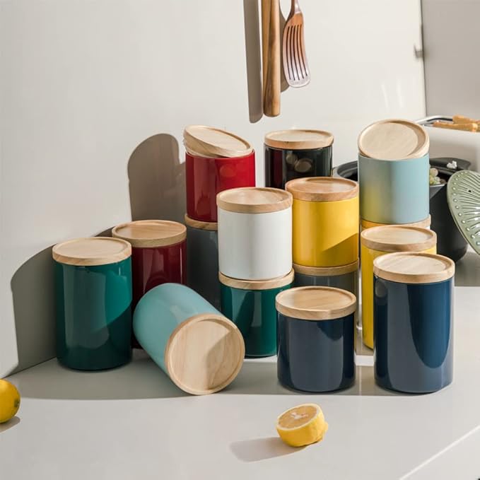 • Ceramic Material - Sweejar food storage containers are made of food grade, smooth porcelain. The containers with wooden lid and rubber seal to ensure a true airtight seal and lightproof. They are good for maintaining food and seasoning fresh.