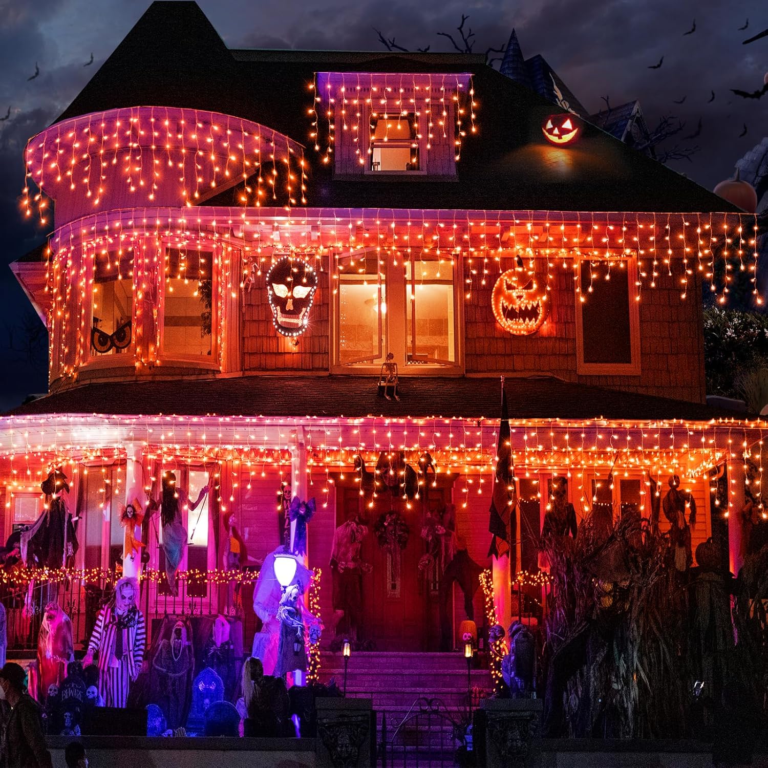 • Easy to Install & Connectable: These Halloween lights outdoor are super easy to use. They can be connected up to 3 sets of icicle lights end to end, which is convenient for decorating broad areas. Our Halloween icicle lights can be easily draped or hung on the roofs, yards, window, patios, garden, fence or bedroom, adding a spooky yet fun Halloween vibe to your space.
