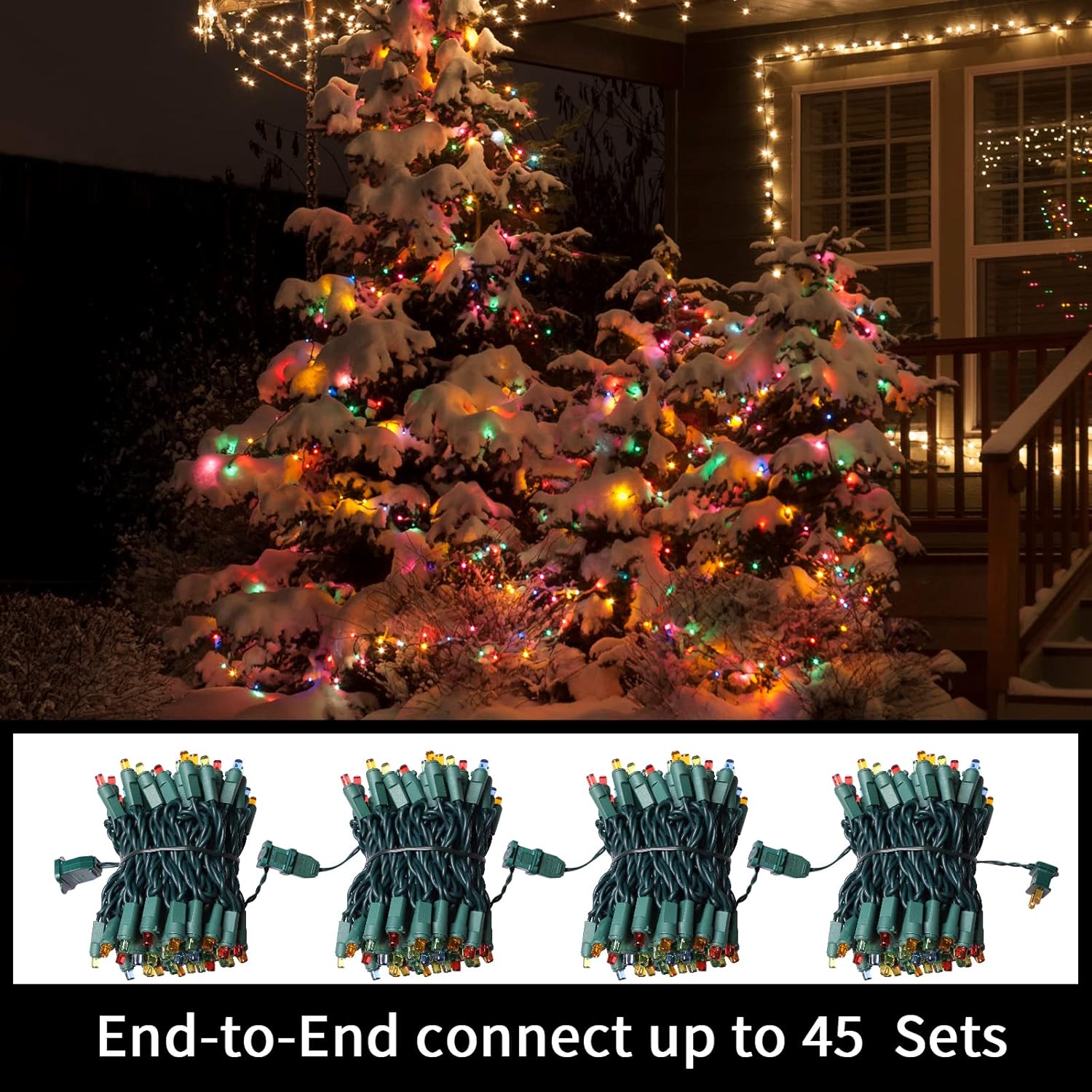 • Connect 45 Sets on One Plug: Safely connect up to 45 sets end-to-end on one plug, so if one string lights burns out, the others remain on. Also, each white Christmas lights has 2 extra fuses that can be replaced without fear of burnout or overload.