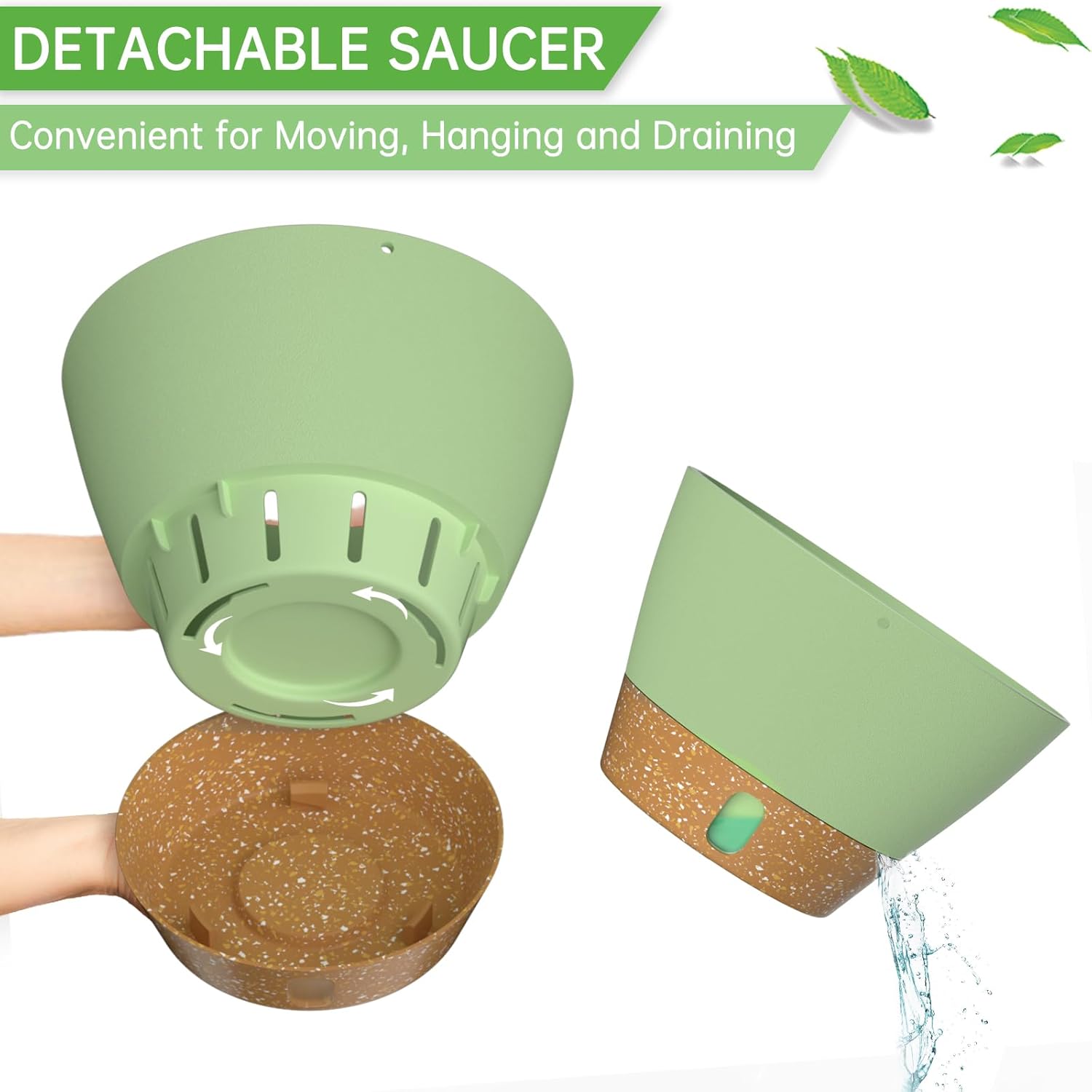 • 2 Pack Hanging Planters: Size: 10'' * 6.7''(Diameter * Height); The matte color is perfect for any home decor style. Hanging vertically for easy space-saving, it is perfect for your patio, garden, porch, balcony, home, room, or near a window to add more cozy green accents.
