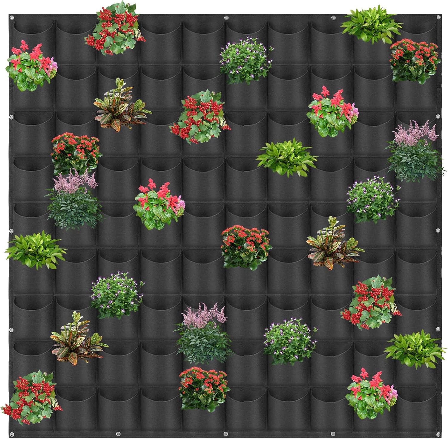 90 Pockets Hanging Planter Bags, Hanging Vertical Wall Mounted Plant Planting Grow Bags, Herb Garden Planter Outdoor Indoor Growing Bag, Gardening Vertical Greening Flower Container(1.1m×1.1m, Black)
